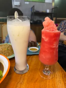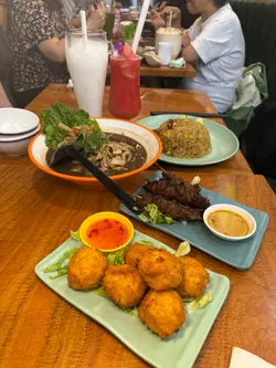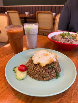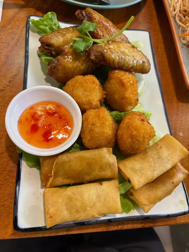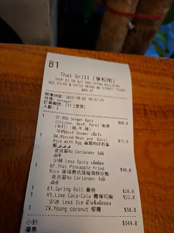 放工後同事說帶我到荃灣吃正宗泰國菜🍽️,而且價錢非常親民,當然要試試啦❗✨香葉肉碎煎蛋飯賣相吸引,潔白米飯🍚上蓋著流心的太陽蛋🍳,周邊圍繞著炒香的肉碎與香葉🍃。戳破蛋黃後,蛋液與鹹香惹味的肉碎拌勻,味道香辣濃郁,非常開胃。肉碎口感紮實,與滑順的蛋液和米飯🍚形成完美搭配,每一口都充滿滋味🥰✨原條泰式菠蘿海鮮炒飯金黃色的炒飯,面層鋪上肉鬆、海鮮🦐、腰果及原條新鮮菠蘿🍍,色彩繽紛。味道方面,炒飯充滿菠蘿🍍的天然果甜,與咖哩粉🥘的微辛相得益彰,海鮮鮮味突出。口感豐富,飯粒乾身分明,搭配軟嫩海鮮🦑與香脆果仁,層次十足 💕✨牛肉串燒(半打)串燒外表帶著誘人的焦烤痕跡,油光閃亮。味道鹹甜交織,蜜糖🍯的甜與醬油的鹹完美融合,燒烤味濃郁。牛肉🐂口感軟嫩多汁,火候控制得宜,不會過韌,令人一串接一串 💖✨春卷外皮炸至金黃酥脆,賣相小巧精緻。內餡是傳統的蔬菜🥬和豬肉🐖,味道鹹香適中,食落鬆化脆口卻不油膩😋…查看更多