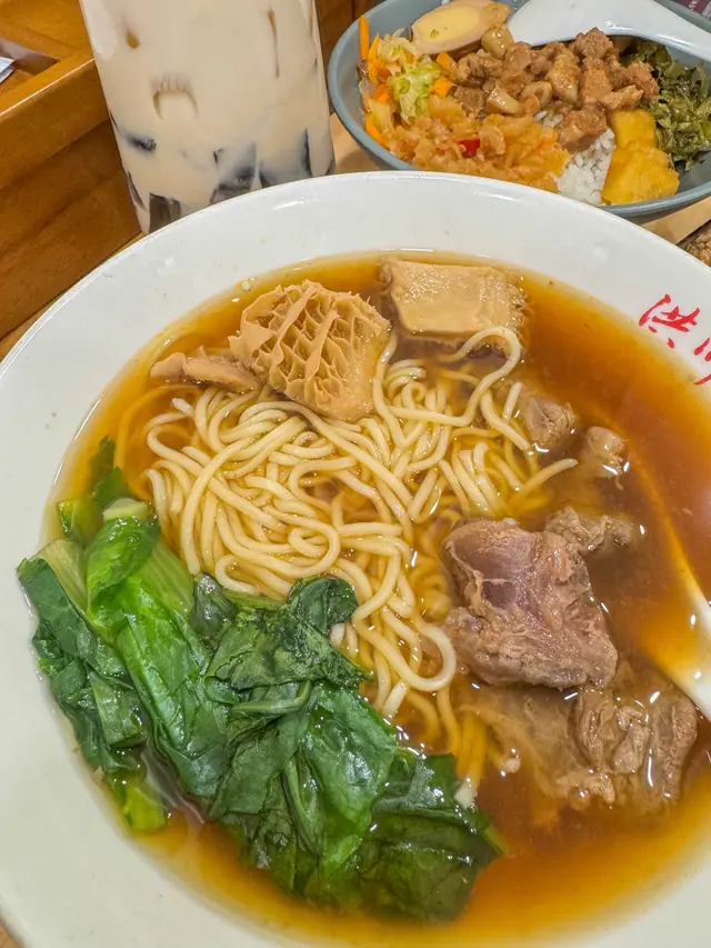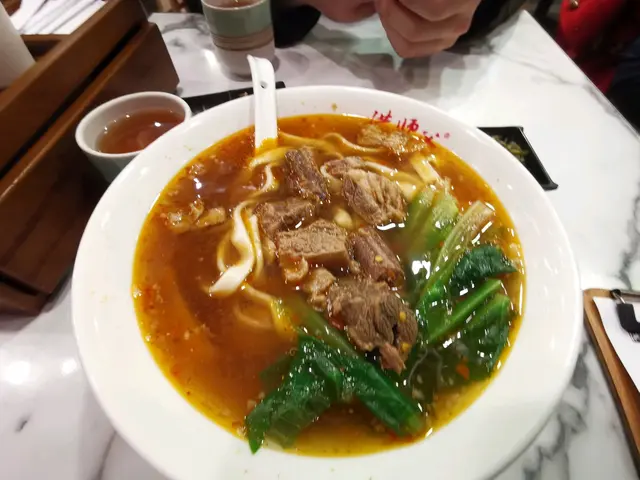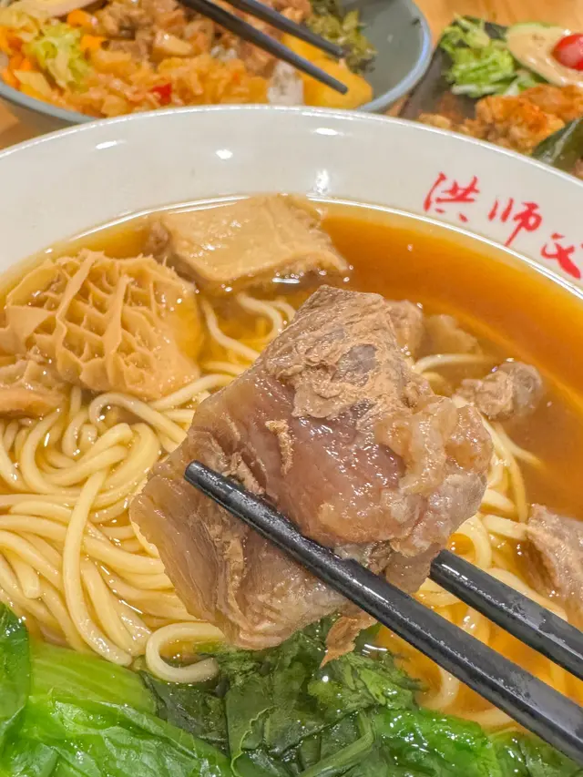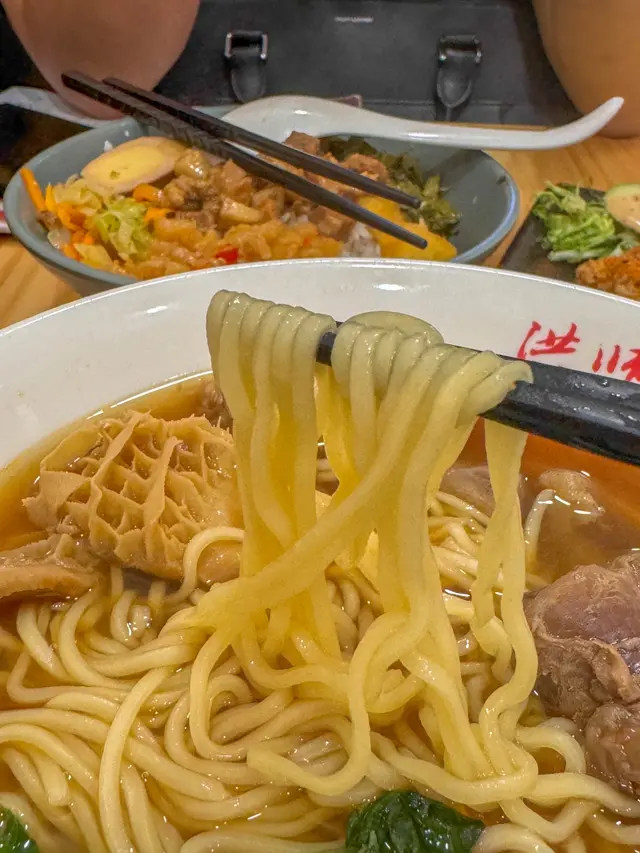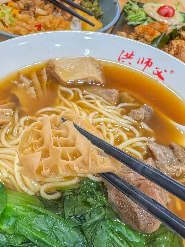 台灣的5屆冠軍牛肉麵 DollyLing等級42024-07-20730 瀏覽 關注 洪師父牛肉麵是台灣5屆冠軍牛肉麵的店來,剛好在東涌的東薈城名店倉見到。價錢相對同層的其他餐廳稍為便宜一點,那就乾脆試試這裡的牛肉麵是否真的那麼獨特。座位偏窄一點,桌子也不算很大張,但放了筷子盒和調味料,所以感覺更細張。這裡會是QR Code下單,下單後超快速就可以上桌。牛三寶麵 - 紅燒的湯底,香濃得來是帶甜味,會讓人在吃麵時多喝幾口。「三寶」就是牛筋、牛肚和牛肉。牛筋就是滿滿的骨膠原,口感Q彈滑嫩也很入味。牛肉也是一樣,質感軟嫩,吃落不會覺得是乾柴的。蜂巢牛肚很軟嫩細緻,是唯獨麵條應該算粗身麵吧!?不吃牛肉麵也有台式飯類可以吃,滷肉鹽酥雞飯看起來也不錯。另外亦有台式飲品可以點。…查看更多+ 2以上食評乃用戶個人意見 , 並不代表OpenRice之觀點。3分享台灣的5屆冠軍牛肉麵 洪師父牛肉麵 https://s.openrice.com/QrbT0FHnL00檢舉 張貼 評分4味道3環境3服務3衛生3抵食用餐日期2024-07-13用餐途徑堂食用餐時段午餐