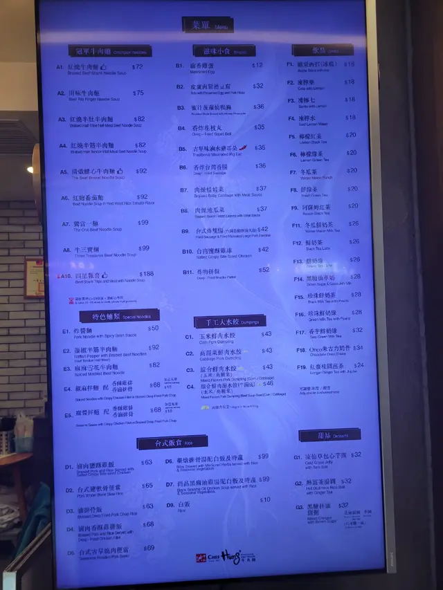 台灣牛肉麵 catherine70188等級32024-02-22688 瀏覽 關注 有超過三年無入東涌東薈城行街,今日和朋友相約入黎 shopping, 原來開咗好多新商店,仲多咗好多嘢食,好多選擇。行到差不多食晚飯時間,就揀咗食台灣牛肉麵,地方唔係好大,距晚飯時間尚早,唔太多人。✨牛三寶麵✨牛三寶有牛肚、牛腩、 牛筋,煮得好入味, 腍滑有口感,湯底味道濃郁但偏甜,因有少許麻辣味,用嘅係粗麵條,好好食,味道尚算唔錯!✨紅燒牛肉麵✨牛肉鹵得夠腍好味,有咬口,加埋配菜(酸菜)香蔥和辣椒油,味道啱啱好✌️✨玉米鮮肉水餃✨一口炸豆腐✨水餃餡肉都有肉汁,但原來水餃係蒸餃😅;豆腐外脆內嫩滑,兩個小吃不過不失啦。…查看更多+ 4以上食評乃用戶個人意見 , 並不代表OpenRice之觀點。讚好分享台灣牛肉麵 洪師父牛肉麵 https://s.openrice.com/QrbT0sHjH00檢舉 張貼 評分4味道3環境4服務4衛生4抵食用餐途徑堂食