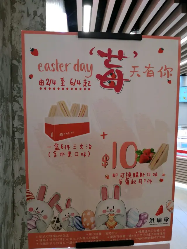 今次嚟到位於朗豪坊嘅洪瑞珍 🥪原來係hk已經開咗咁多間分台🤣當年阿姐我仲辛辛苦苦係台灣買返嚟hk食🥹當時嘅味道確實有比佢驚艷到🤣雖然咁耐冇食 但今次選擇就試下佢新嘢先🤍🤍————————————————❶ 芥末蟹棒三文治 雖然睇落係芥末味道🤣但其實食落一啲都唔辣😋再配上薄薄嘅蛋皮及蟹棒✨令到成件事豐富咗💛❷ 朱古力戚風三文治 ❸ 芒果戚風三文治➍ 草莓戚風三文治❺ 藍莓戚風三文治 朱古力味道濃郁 而且唔會好甜🤣但如果想揀fresh啲嘅味道✨一定係考慮依款水果味嘅戚風三文治🤍入面仲有mix埋水果肉嘅mousse 🤣食落好smooth又唔會好甜✨兩層蛋糕好鬆軟濕潤 一啲都唔會有好乾嘅感覺😚新款嘅戚風三文治除咗會喺朗豪坊分店售賣之外 仲有喺下面四款分店都有賣呀!😚有興趣快啲去試吓!🤣📍地點:銅鑼灣時代廣場B2層B214B舖🕒營業時間:8:00a.m - 9:45p.m📍地點:沙田東鐵站27號舖(閘內)🕒營業時間:8:00a.m - 9:45p.m📍地點:九龍灣德福廣場1期G96-97舖🕒營業時間:週一至週五 08:00a.m - 8:45p.m/ 週六日及公眾假期 10:00a.m - 8:45p.m📍地點:將軍澳TheLohas康城商場3樓356A舖🕒營業時間:11:30a.m - 8:45p.m————————————————推薦指數: 🌕🌕🌕🌕🌕🌕🌕🌑🌑🌑| 7/10環境指數: 🌕🌕🌕🌕🌕🌕🌕🌑🌑🌑| 7/10服務指數: 🌕🌕🌕🌕🌕🌕🌕🌑🌑🌑| 7/10好食指數: 🌕🌕🌕🌕🌕🌕🌕🌑🌑🌑| 7/10性價比指數: 🌕🌕🌕🌕🌕🌕🌕🌑🌑🌑| 7/10回訪指數: 🌕🌕🌕🌕🌕🌕🌕🌑🌑🌑| 7/10…查看更多