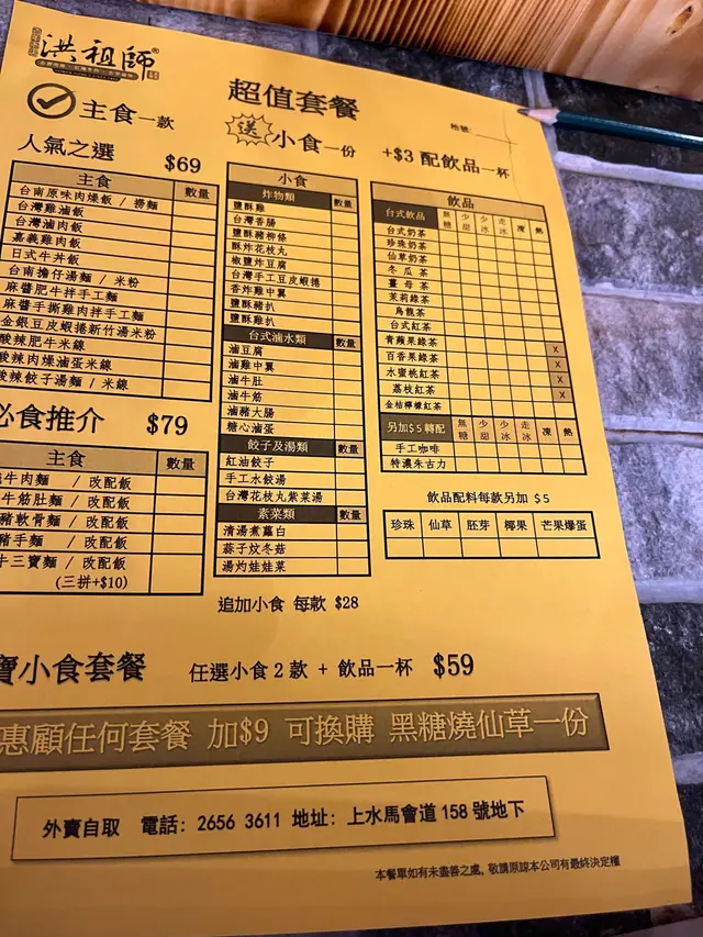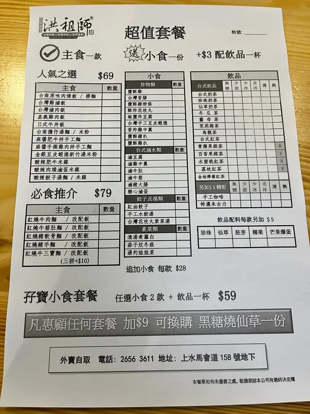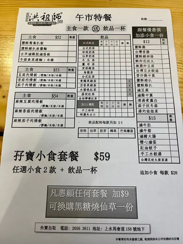 洪祖師 (上水) 網址: https://s.openrice.com/QrbS0QhC600 地址: 香港上水馬會道158號地舖 電話: +852 26563611