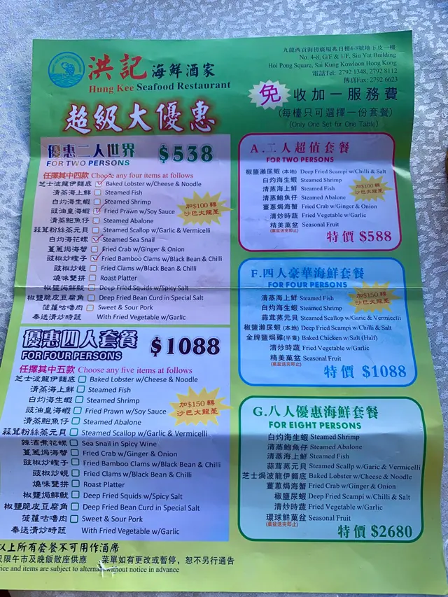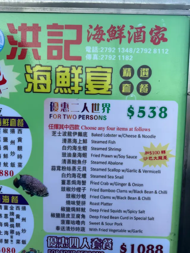 前段時間去香港旅遊,專門打卡了位於西貢碼頭的洪記海鮮酒家,真的太讓人難忘了!酒家就在西貢海旁廣場,離碼頭超近,招牌特別醒目,一眼就能看到。環境是典型的大排檔風格,熱鬧又有煙火氣,露天座位還能邊吃邊欣賞海景。門口擺放著巨大的水族箱,裡面滿是生猛活海鮮,種類多得讓人眼花繚亂,帝王蟹、龍蝦、象拔蚌、各類海魚和螺貝等,品質看著就很棒。我和朋友點了店裡的雙人套餐,又額外加了幾個招牌菜。白灼蝦一定要誇,脆嫩彈牙,豉椒的香氣完美融入其中,每一口都超滿足;龍伊面底也超贊,龍蝦肉新鮮彈牙,伊面吸收了龍蝦的鮮美湯汁,勁道又入味;還有蒜蓉蒸扇貝,粉絲吸滿了蒜香和海鮮的鮮甜,扇貝肉又大又嫩。套餐里的時蔬也很新鮮爽口,清爽解膩。雖說價格不算便宜,但食材新鮮、烹飪地道,味道和品質完全對得起價格,性價比還是可以的。服務員態度熱情,上菜速度也快。總之,洪記海鮮酒家非常值得一試,強烈推薦給愛吃海鮮的朋友們!…查看更多