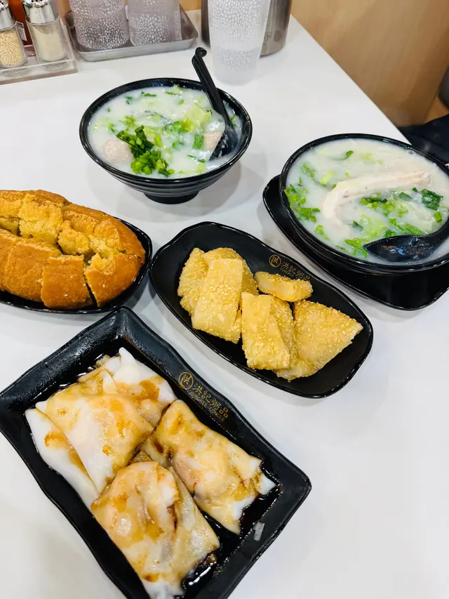這天到粉嶺參加活動後就在附近找地方吃晚餐,最近吃得有點膩滯,所以想吃點粥🛶 艇仔粥粥底綿滑,配料豐富——花生、炸麵、碎牛、魷魚、豬皮等層次分明,香菜與蔥花點綴其中🐟 生菜鮮鯪魚球粥加豬紅鯪魚球鮮嫩彈牙,魚香濃郁而不腥。生菜口感爽脆,豬紅滑嫩如豆腐🐷 豬潤腸粉腸粉皮薄而滑,豬潤入口即化🍜 豉油王炒麵豉油王炒麵炒得乾身又夠香,豆芽爽脆🧊 蒸蘿蔔糕非常大磚,蘿蔔糕的清香與臘味的鹹香交織,口感軟糯綿密🍃 鹹肉粽糯米黏而不膩,鹹蛋黃、五花肉、綠豆等餡料分布均勻,每一口都能吃到不同的層次🥛 豆漿豆漿香濃滑順,不過甜,還可要求加熱這粥品店提供的粥品及其他食品都讓人感受到香港飲食的深厚底蘊