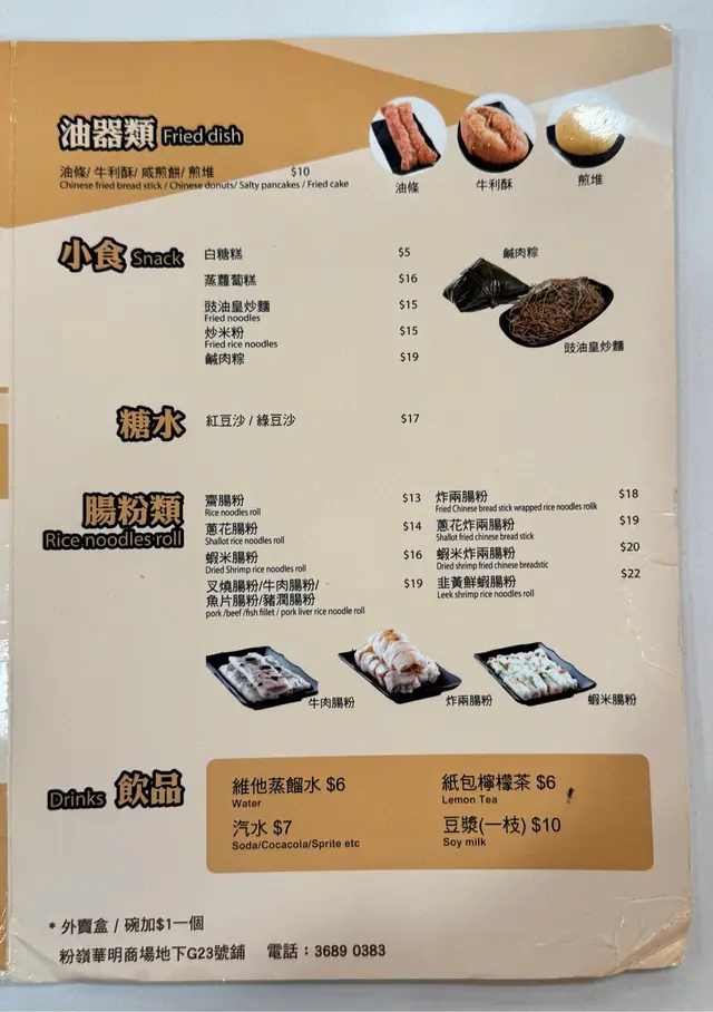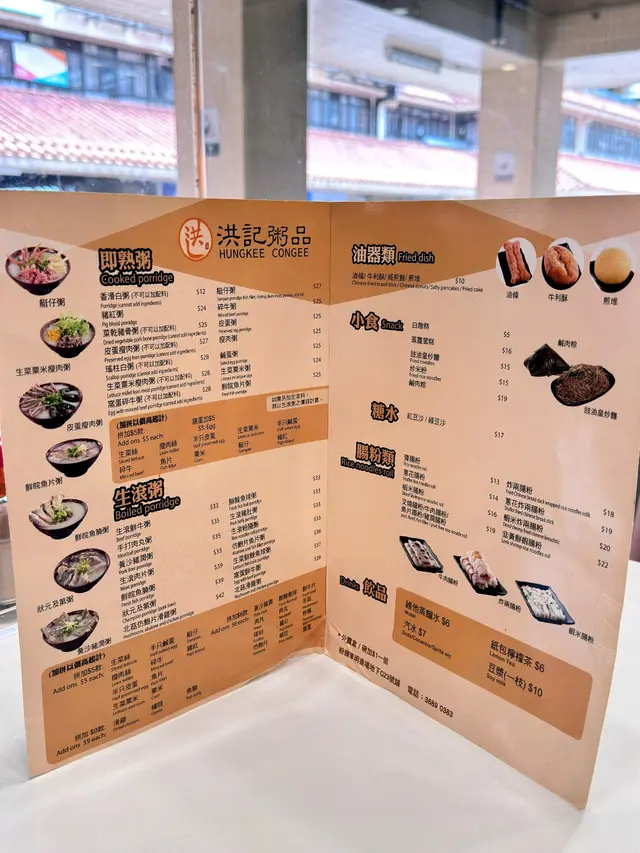 洪記粥品 (華明商場) (粉嶺) 網址: https://s.openrice.com/QrbS0tey5W0 地址: 香港粉嶺華明路21號華明商場地下G23號舖 電話: +852 36890383