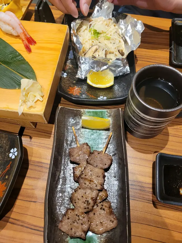 💫玉子燒每次都嗌,唔算好滑,帶少少甜,但熱辣辣噴曬煙,食完一舊又一舊,停唔到口!💫雞肉串雞肉串帶啲脆骨,口感提升左之餘香氣都好足,加埋醬油漬蛋黃,簡單世一!💫時令秋刀魚佢地成日都有唔好seasonal既魚做刺身,秋刀魚配酸汁好鮮甜,食完刺身個魚架仲可以加錢炸左佢,炸完脆卜卜送酒一流!一啖都唔浪費。💫厚燒牛舌厚切既關係牛舌勁juicy,燒得岩岩好,入面仲有少少粉紅色,不過一定要襯熱食!💫壽司拼盤呢個係做佢地membership之後用積分換的,但用料完全唔馬虎,每款都新鮮又好食,仲有海膽添🤩🤩佢地酒水都好抵飲 生啲1L先$88! 上次去仲做緊買2送1,最岩同朋友醉住傾計…查看更多