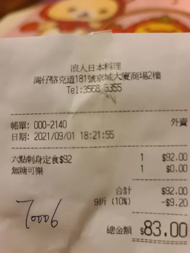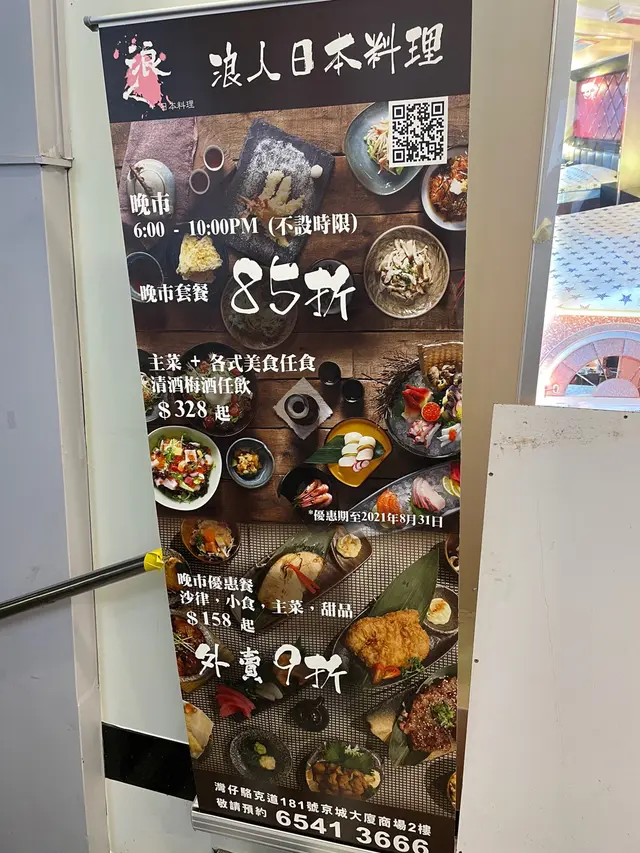 浪人日本料理 (灣仔) 網址: https://s.openrice.com/QrbS0Bgm200 地址: 香港灣仔駱克道181號京城大廈商場2樓 電話: +852 65413666