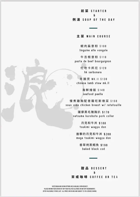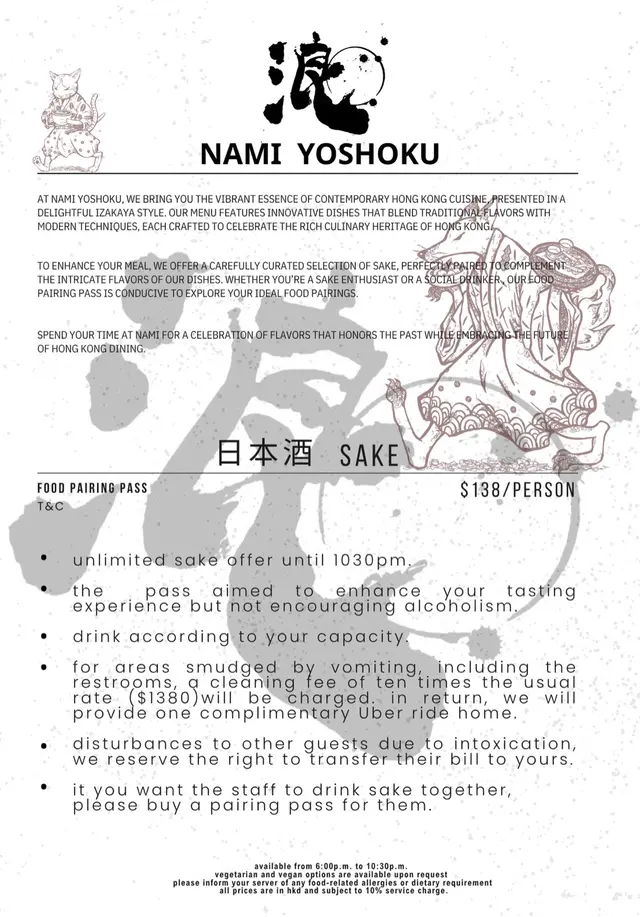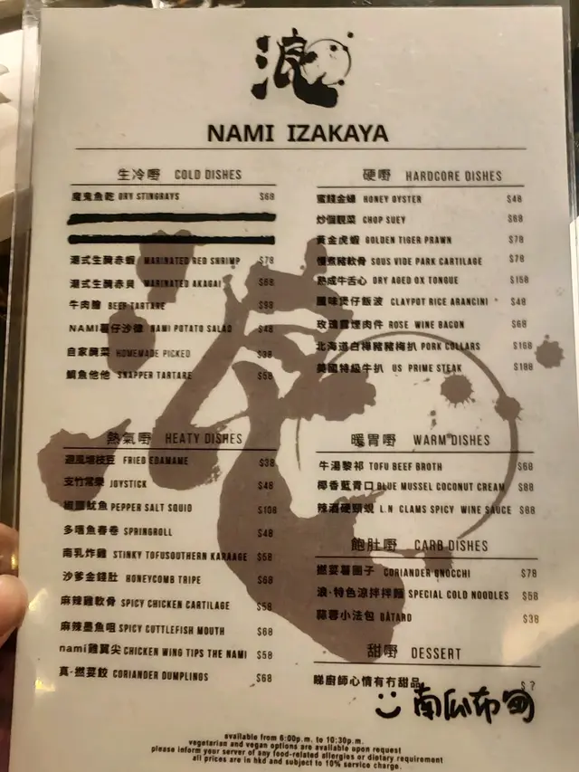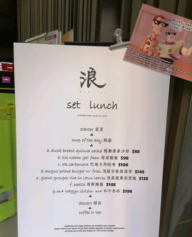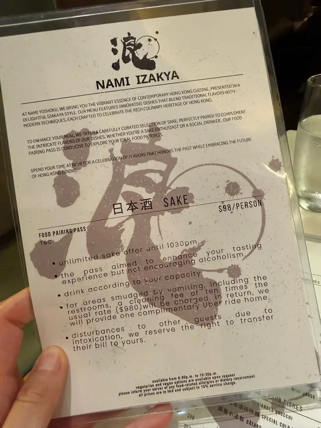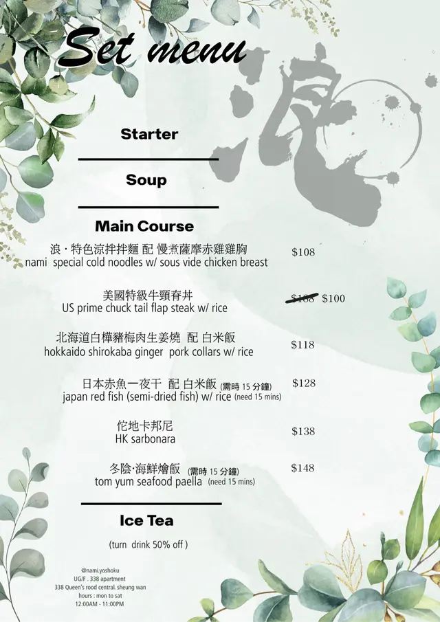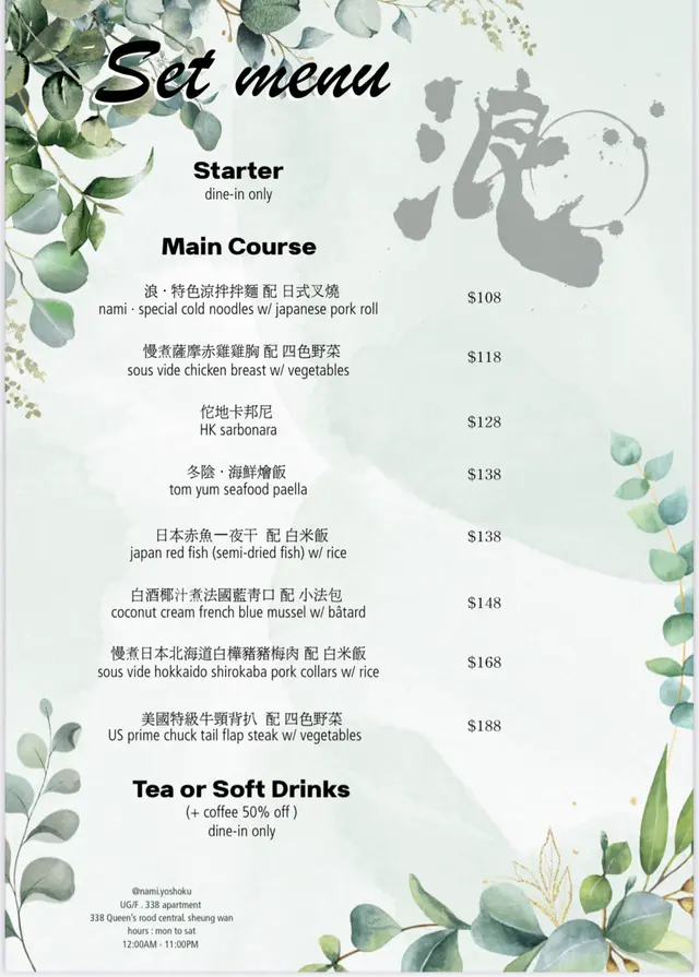 浪 (上環) 網上訂座即賺Rice Dollars 網址: https://s.openrice.com/QrbS0G6y6W0~dMOS6tQgg 地址: 香港上環皇后大道中338號338 Apartment UG樓1號舖
