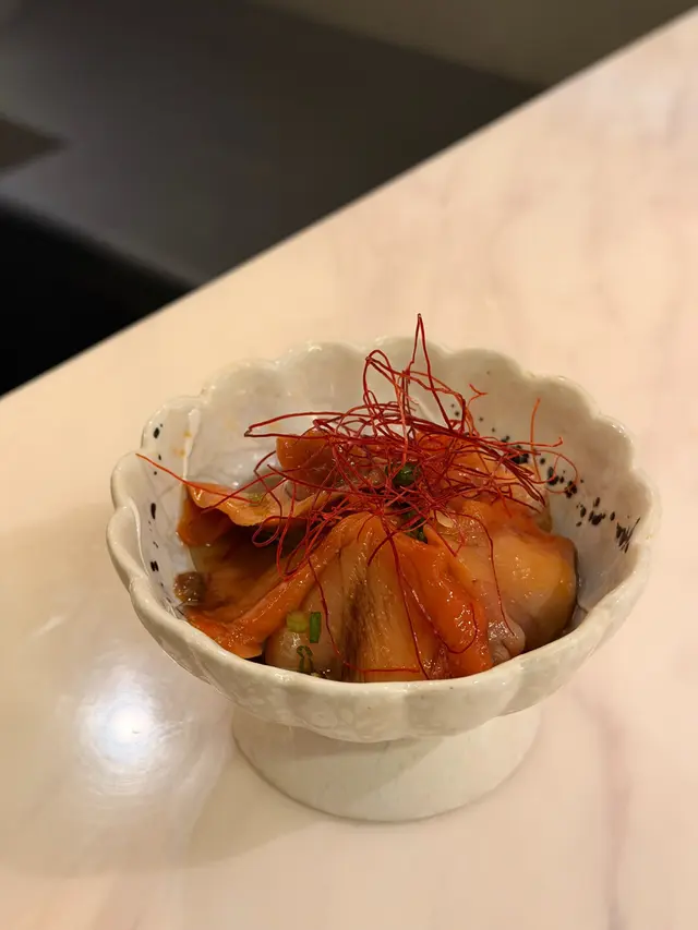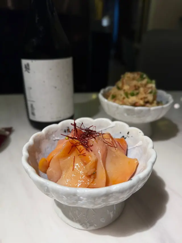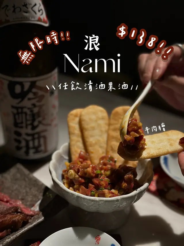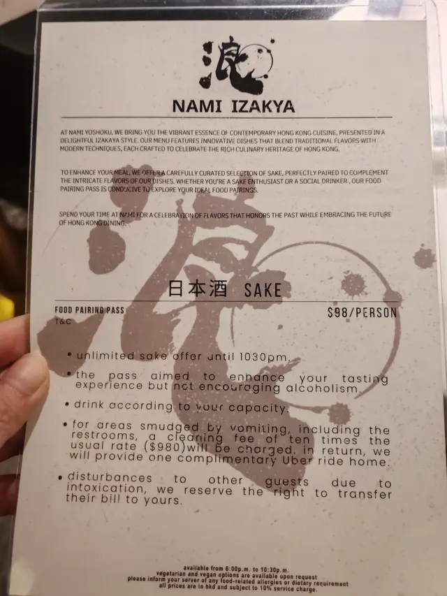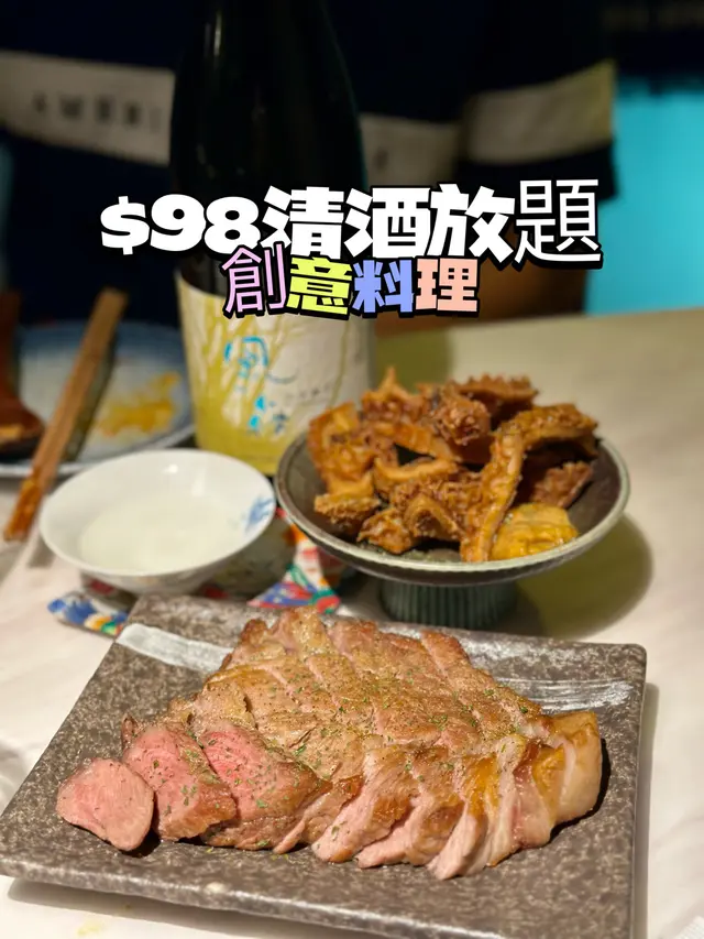位於上環嘅「浪Nami Yoshoku」居酒屋真係有驚喜!只需要$98清酒無限時任飲,仲要係有幾十款超有誠意嘅清酒可以慢慢試,全部都好有質素,餐廳老闆仲專業地向我地介紹每款特色,愛酒之人絕對會好enjoy!除左有好酒菜式亦好有心思,結合咗日式同港式嘅fusion風格,食材夠新鮮,而且烹調得好好味,完全係超乎預期。第一次去有點難搵,入口隱藏喺商場上一層嘅轉角位。小店格局精緻,裝潢好有風格,營造出溫暖舒適嘅氛圍。當晚不知不覺得試左接近10款清酒,真正飲飽食醉。✦ 潮式生醃赤貝:赤貝鮮甜爽脆,醃料恰到好處,完美保留海鮮原味,必食!✦ 鯛魚他他:鯛魚鮮味十足,醬汁夠清新,口感滑溜✦ 蜜餞金蠔:大大隻又外脆內嫩,有好濃郁嘅金蠔味,超正!✦ 麻辣墨魚咀:香辣脆口,墨魚咀住煮得啱啱好夠彈牙,送酒一流✦ 慢煮豬軟骨:炆到入心入肺,入口即溶,味道濃郁得來唔會過膩✦ 臘味煲仔飯波:將傳統煲仔飯變成精緻小食,外層香脆內裡軟糯,臘味香氣十足,好特別呢間絕對係未被發掘嘅寶藏小店,係我會再encore嘅好地方!…查看更多