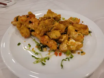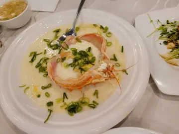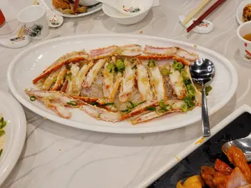 已經幫襯咗幾次,覺得食物好味,環境舒適 服務亦很好,今次一家人食超級長腳蟹套餐, 一般酒樓都只是蒸全蟹,但這裏做法是一蟹三味:蒜蓉蒸蟹腳、蟹身椒鹽炸及花雕蛋白蒸蟹蓋,蒜蓉粉絲蒸蟹腳很鮮甜,椒鹽炸的蟹身夠酥脆,只是花雕蛋白蒸蟹蓋不夠花鵰酒味。山楂拔絲咕嚕肉味道很好酸甜度適中很開胃,套餐中的鮮淮山浸時梳可以選擇自己喜歡的蔬菜,南乳燒雞皮脆肉嫩,幫襯了幾次已變成老顧客,所以甜品給我們選擇,揀了美味的紅豆沙,一家人都很滿意的晚餐,尤其奶奶讚不絕口…查看更多