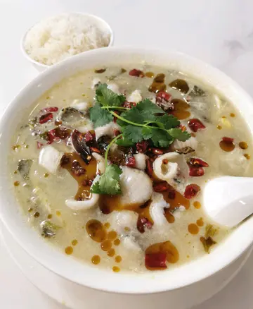 北角嘅海家出名既就係酸菜魚,今日口淡淡就過嚟食個lunch啦。午市嘅套餐都算抵食60零80零蚊就食到川菜客飯,今日就叫左個酸菜魚麵正常辣試下。酸菜魚既湯底絕對係靈魂所在,而呢個湯頭都算唔錯,但我就略嫌佢唔夠酸,而正常辣既水平亦都偏淡,如果下次再食應該要叫多酸中辣先得🤣。再講下魚片,夠滑既,而lunch來講,份量都算合理。至於配料數量都夠多,但就好似煮得唔夠淋唔夠索味。By the way, 整體都唔差,可以再嚟食嘅。…查看更多