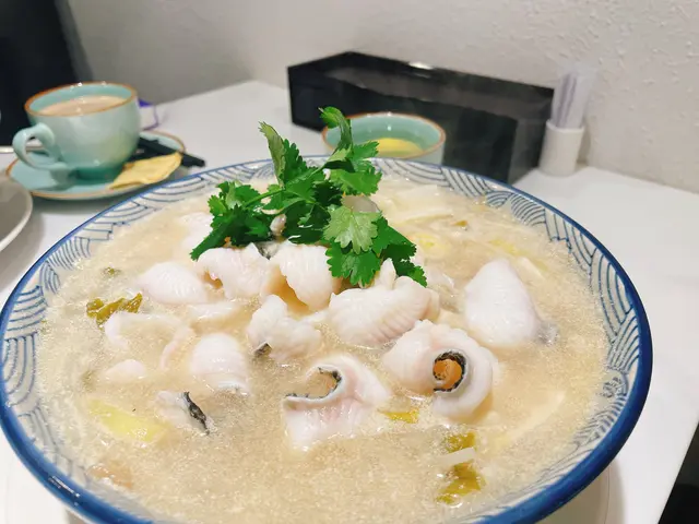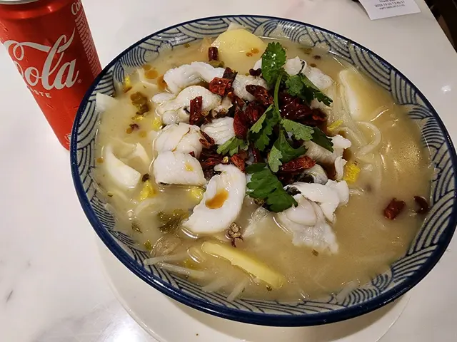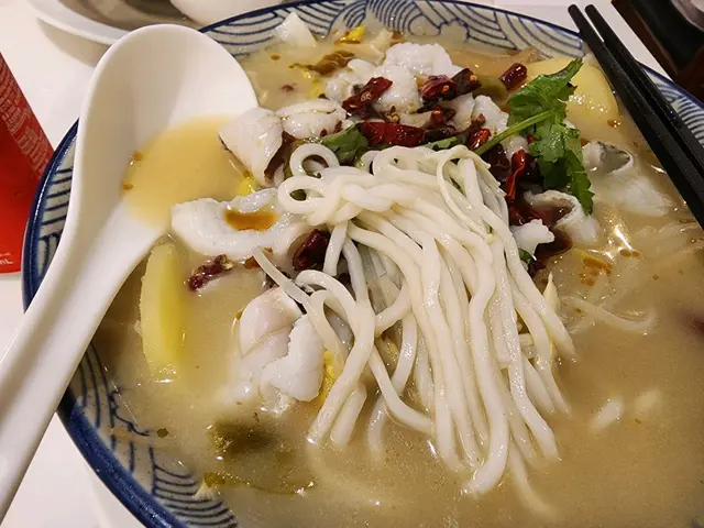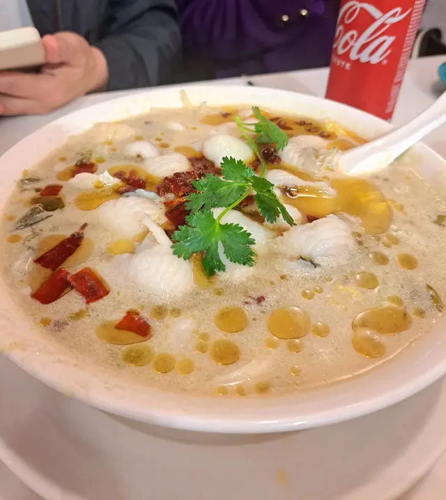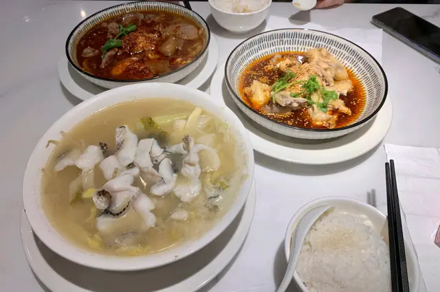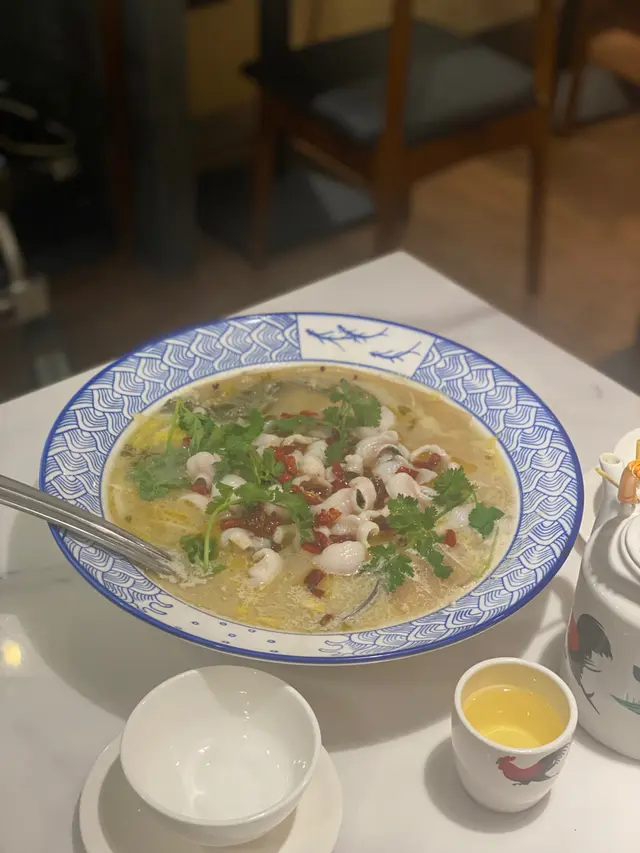 依間川菜嘅menu寫明唔加味精佢地嘅酸菜魚食完的確冇口喝嘅感覺 有得揀辣/唔辣環境乾淨 有唔少卡位 地方都幾闊落酸菜魚湯麵 $82 🐟🍜魚片分量算多 好滑 夠厚身 唔會薄到冇魚味配菜有酸菜,芽菜,荀,蓮藕,仲有少少寬粉!麵似幼身上海麵湯底唔係重口味嘅酸湯 而係微酸清清地健康嘅感覺 一路食一路飲啲湯都唔覺油Lunch time仲包一杯飲品 有西洋菜蜜!辣到嘅方面我覺得其實算BB辣 只用面頭少少辣油同啲乾辣椒帶出辣味 推介俾唔食得太辣又想試酸菜魚嘅朋友👍🏻…查看更多