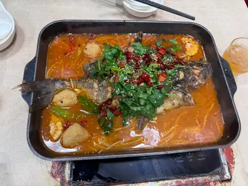 一直都喺老細自己煮,所以食物質素一直都保持喺度。雖然雞煲睇落唔多,,但喺成個雞煲喺走曬頭同頸。 另外講返個烤魚,都系我最鐘意食既鉗魚,因為無乜骨,肉身好滑,我地叫左四川水煮口味,個湯底好濃郁,真喺好正! 好正!