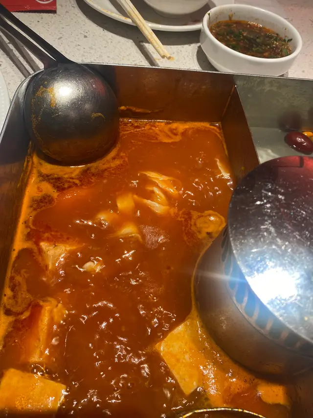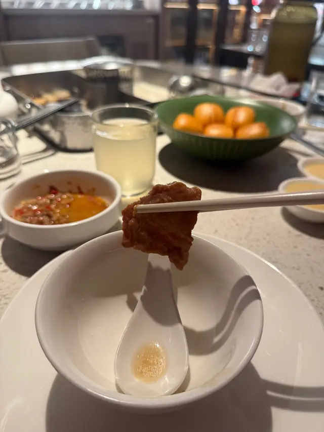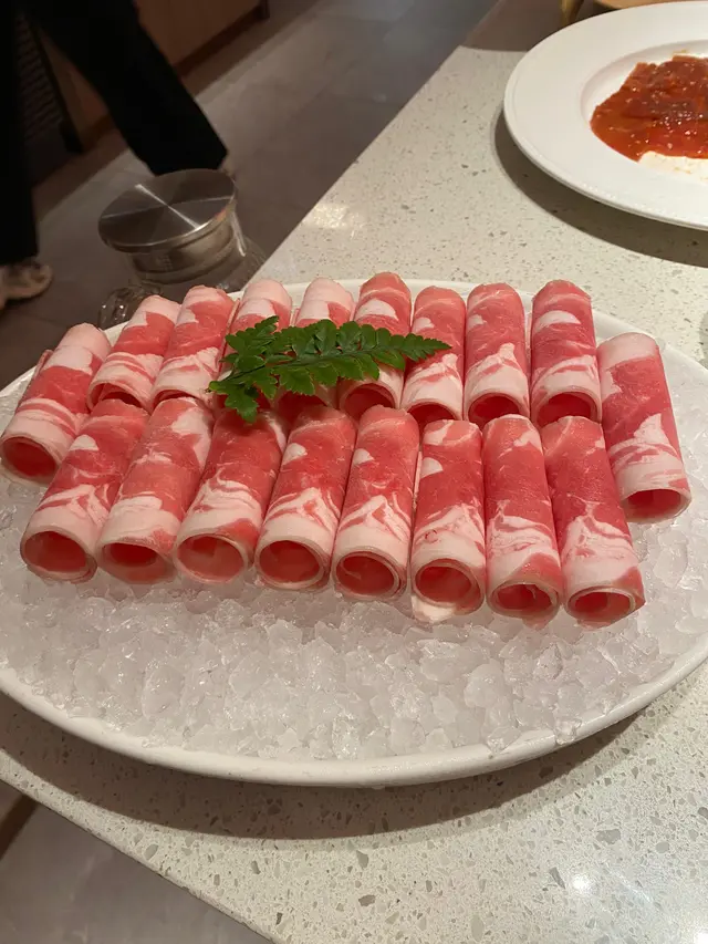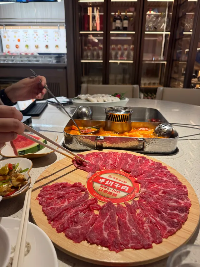 海底撈果然從來唔會令人失望!今次同班friend去咗尖沙咀分店,呢度相比其他分店不同,遠離熱鬧圈,除了打邊爐,仲係更高層次的服務和舒服。叫咗個鴛鴦湯底,三鮮湯底同蕃茄湯底,真心正!三鮮湯底清甜得嚟唔會搶走食材原味,而蕃茄湯底濃郁開胃,未涮料已經加肉碎飲咗兩碗!手切雪花肥牛係必點!擺盆已經精緻,油脂分布靚到好似藝術品,淥8秒就食得,入口即化,牛味濃郁,兩種湯底都夾到爆。另外叫咗芝士牛丸同牛肉丸芝士牛丸一咬落去芝士爆漿,小心燙嘴!牛筋丸彈牙有嚼勁,真材實料,中意食牛丸一定要叫~8秒脆肉鯇果然名不虛傳,真係8秒就食得,薄薄一片魚肉鮮甜爽脆,一啲魚腥味都冇,唔食魚都食到,點少少豉油已經好夠味。雙拼千層肚有驚喜!黑柏葉爽脆,牛柏葉軟嫩,口感層次豐富,都係十秒就食得~鍾意食內臟嘅朋友一定要試。蔬菜方面叫田園時蔬拼盤、青荀、山藥同牛奶甜粟,新鮮清甜,牛奶粟米超香甜,青荀口感外脆內軟,山藥涮完之後粉糯帶清甜脆口,吸收晒湯底精華。最後必點人手拉麵,師傅即場拉麵,口感煙韌,索盡蕃茄湯精華,簡直係完美收官!再加個炸饅頭,外脆內軟,點煉奶食,邪惡但滿足!整體嚟講,食材新鮮有質素,服務一如既往咁周到,仲送果盆,環境舒服,雖然價錢中上,但絕對物有所值。已經約定朋友次嚟個生日encore!…查看更多