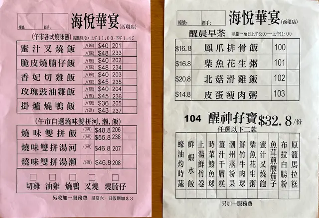 海悅華宴 (西環) 網址: https://s.openrice.com/QrbS0Mf4B00 地址: 香港西環石塘咀山道4-16號業昌大廈地舖 電話: +852 28193218