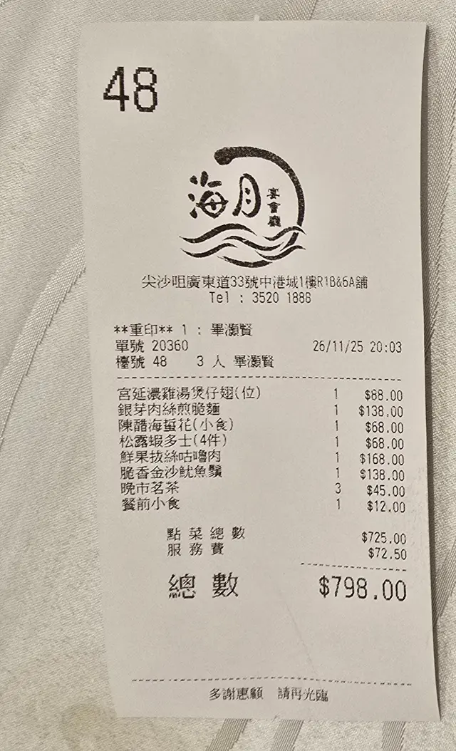 海月宴會廳 (尖沙咀) 網上訂座享特別優惠兼賺Rice Dollars 網址: https://s.openrice.com/QrbS0yK4500 地址: 香港尖沙咀廣東道33號中港城1樓6A號舖 電話: +852 35201888