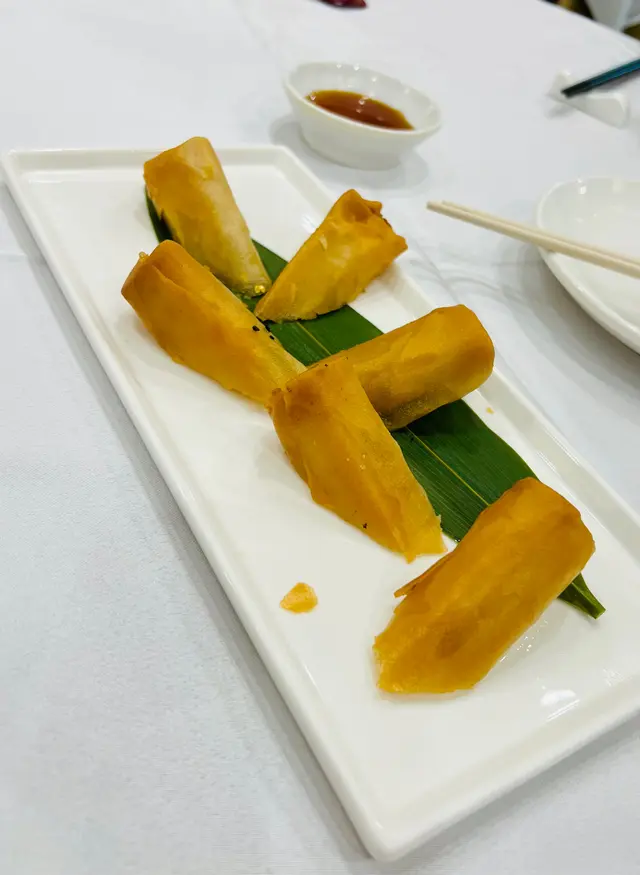 墊塊竹葉,觀感都好啲,塊塊睇到厚薄均一,而煎得甘香平均,咬落外層香脆,裡面蓮藕味突出,唔喺話勁溝粉嗰啲。