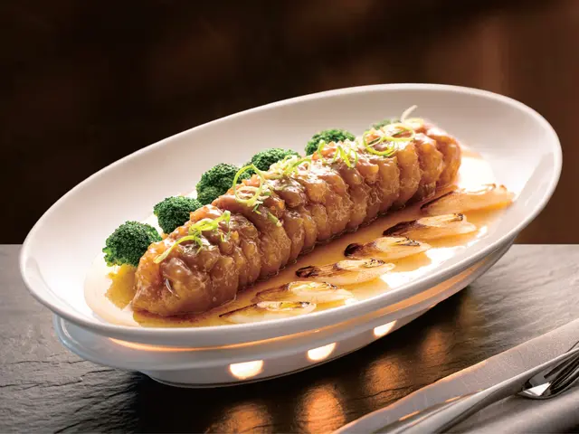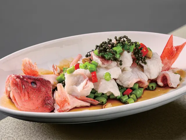 ,展出多款游水海鮮,實在吸睛!用餐大堂樓底唔算矮,間隔開揚,舖上厚厚嘅地毯有助吸音。據悉,店內另有三間廂房,分別最多可容納上八人、十四人及十八人,對應嘅晚市最低消費為五千蚊、八千蚊及萬五蚊,其中唯一設有私人廁所嗰間十四人房就最多人訂。每位席上都擺有齊備嘅自用及公用餐具。網上已有人上載厚本餐牌,其首頁先道出店子「金齏玉饌」嘅理念。最後一頁列明茗茶$18/位及其他雜項收費詳情。開瓶費$100/枝,實屬良心價,不過新張期間暫免開瓶費,酒鬼們有福啦