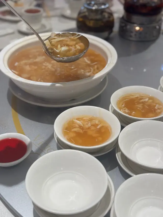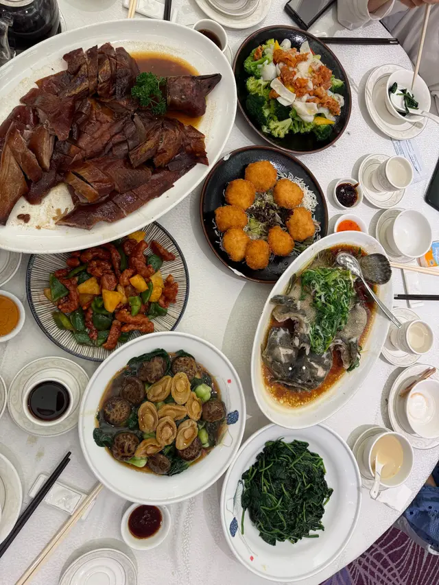 屋企人從加拿大回港,接機後去青衣這間酒樓吃飯。🥰環境闊落,味道很好!很適合家庭聚餐!👍🏻招牌燒鵝王外皮香脆、油脂分布均勻,肉質嫩滑。西蘭花帶子珊瑚蚌色香味俱全,營養豐富,十分鮮美!新鮮菠蘿咕嚕肉外酥內嫩,菠蘿的酸甜味為其增添了不少風味!👍🏻皇阿瑪鮑魚雞煲湯底鮮美,十分滋補!燒乳鴿外皮酥脆、肉質鮮嫩!經過醃製後,用高溫烤制而成。上湯龍蝦伊麵超大碟,龍蝦新鮮彈牙,伊麵掛汁,飽肚又滿足!☺️👍🏻…查看更多