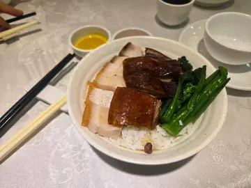 今日聽朋友講海港酒家燒鵝特價,38元例牌真係好平,於是拖住 Honey 搭長途車來吃燒鵝,在門口見到餐牌,原來特價的還有蒸魚,真是超實惠。於是二人坐低開茶點菜,等食平燒鵝。兩支公點了一碟例牌燒鵝,一個櫻花蝦粉絲椰菜煲,一葷一素健康開心。 這裡的茶位費也很便宜,只是13元一位,白飯15元一碗,也是很實惠的。兩碟菜很快送到,燒鵝份量不小,都是胸肉部分,但顏色暗啞,無燒鵝香味,食落肉有點梅梅地,明顯不太新鮮,鵝皮也不脆,望下隔離大台客的燒鵝明顯不同,大大碟,皮光肉鮮,香味可聞得到,好失望😔,酒樓將不新鮮的鵝給新客或消費少的客,似乎不是理性的做法。🤬櫻花蝦粉絲椰菜煲就很好,份量足,煮得香口乾身,配搭了蛋皮芹菜,好味又能送飯,雖然價錢💰不是特價$118,至少是貨真價實,交足功課。👍…查看更多