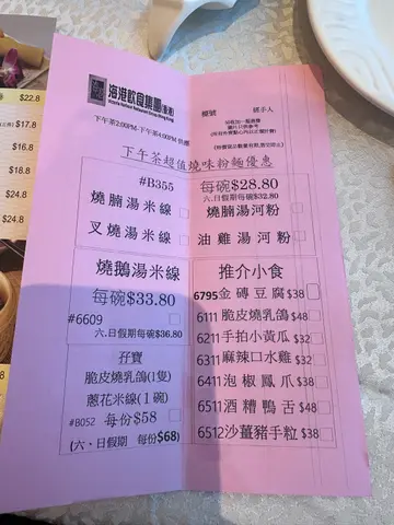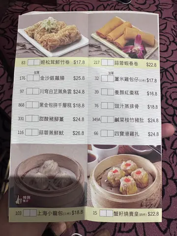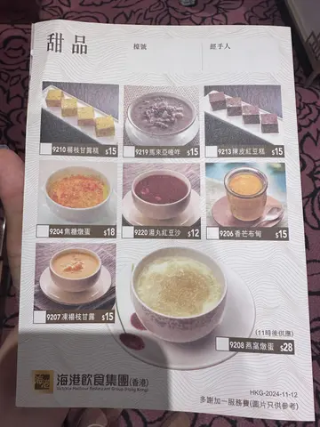 午後到海港喝下午茶。要了香片,花香清,先潤口。四個人不客氣,從蒸籠到煎炸,各點一輪。蝦餃皮薄,蝦身爽甜。潮州粉粿料多,花生與蒜香突出。櫻花蝦煎薄撐微脆,蝦香明顯。最有記憶點的是韭菜盒子,每件裡藏一顆鵪鶉蛋,韭香混合蛋香,比例討好。花枝玉米餅咬下是滿滿玉米,甜味搶鏡,花枝彈口,口感豐富,這個超級推!炸鮮蝦雲吞輕盈不油,夾著沾點微酸沙拉醬,挺不錯。雪山叉燒包外殼微脆,內餡甜而不膩。芫茜牛肉球和芫茜叉燒腸粉的芫茜下得重,喜歡的人會開心。我們還加了豉椒排骨炒河,鑊氣頗足,醬香裹在河粉上。整體水準穩。出品齊整。4人$400多一些,以下午茶價位看,性價比Ok。…查看更多
