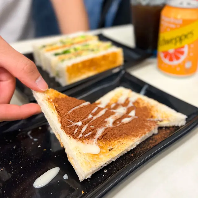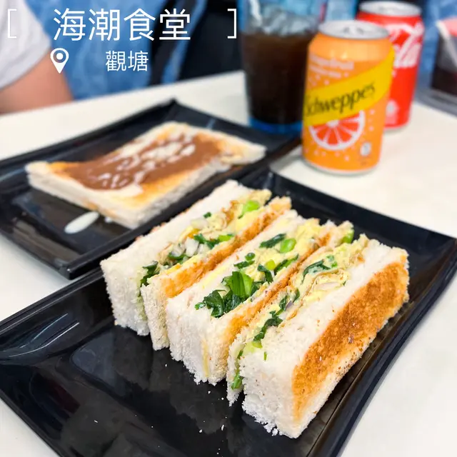 🇭🇰海潮食堂·呢間我哋之前已經好幾次想食㗎啦 不過佢係比較早閂門嘅 而且禮拜日同公眾假期都唔開 所以我哋都摸左幾次門釘🫢之後超級好笑 因為佢呢度嘅menu係全部都貼晒上牆嘅 所以我哋就一路四圍望 之後侍應哥哥勁好笑就話幫我哋嗌 所以最後我哋呢度所有野都係佢推介既 好似食左個港式omakase咁 超搞笑🤣🤣🤣·蔥花蛋治$29 l 魔鬼薄多士$15佢呢度嘅三文治真係幾出色 佢個蔥花蛋治中間好多蔥花 所以食落勁香 而且佢個蛋都唔會話好老🍳之後佢個魔鬼薄多士其實就係佢地既魔鬼奶油多既迷你版 咁就一次過可以食曬兩款佢地出名既多士😍😌佢呢個係將麵包一分為二左 所以烘完之後超脆口 係好似食緊零食咁 都幾正 配埋佢上面海量嘅阿華田粉 煉奶同埋中間既牛油 成個combo好好食🤤·蒜蓉餃子$36 l 手撕雞五香肉丁撈通粉$56主食方面佢個蒜蓉餃子都幾有驚喜 佢粒餃子本身個餡調得唔錯 韭菜比例好多🥟不過更加驚喜係佢隔籬嗰個蒜蓉辣椒醬 佢呢個唔係好辣既 不過配埋上面啲炸左既辣椒籽同蒜蓉 好惹味🧄之後佢個手撕雞都做到好好食 佢個調味係好似鹽水雞咁樣既 而且雞肉超嫩 份量都好多 之後佢上面海量既蔥油都好正🤤🤤不過佢個五香肉丁就咁撈通粉我自己覺得有啲重口味 食落真係有啲鹹🫢所以如果大家嗌嘅話我會建議大家就咁嗌手撕雞通粉應該會好食啲😂😂😂·咖啡可樂$14 l 咸檸西柚汁$4之後呢兩款飲品都係侍應哥哥極力推薦我哋試既 佢個咖啡可樂真係超級盞鬼 佢個咖啡底本身算係幾好飲嘅 而且佢同可樂係出奇地溝得好勻 飲落好搞笑 我自己唔鍾意飲咖啡都覺得幾好飲☕️🤣🤣之後佢另外個咸檸西柚汁 其實就係罐裝西柚汁加左啲咸檸 佢呢個就唔算話好特別 不過都好夾茶餐廳既野食🍋·#rbyeat#rby港式#rby觀塘·📍觀塘成業街19-21 號成業工業大廈地下G6 號舖…查看更多