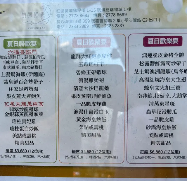 海灣漁港 (紅磡) 網址: https://s.openrice.com/QrbS0nBeC00 地址: 香港紅磡德民街1-15號繽紛購物城1樓 電話: +852 27788683