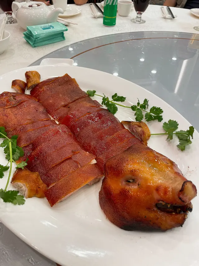 成日去街市買餸,都會路過呢間野,今晚終於有機會試下,今日晚市,唔算好多客人,坐得舒適自在,環境唔會太迫,又唔嘈。職員方面,主動加茶水。1)片皮鴨$168,會有職員在你台前片鴨,呢個價錢,片比你睇,算係咁啦。至於鴨方面,肉質唔錯既,皮脂正常,一分錢一分貨,配料款式就少左d。2)蒸魚(1斤),因為太肚餓,無影到,魚一上台,職員會主動,幫我地開魚,淋上蒸魚豉油,仲好溫馨提示咁,襯熱食呀。食物質數,魚鰭棟L,蒸得岩岩好,下次會叫2斤試試