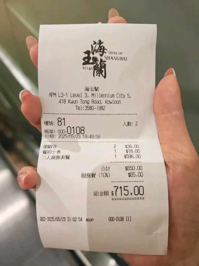 海玉蘭 (觀塘) 網址: https://s.openrice.com/QrbS0YJGD00 地址: 香港觀塘觀塘道418號創紀之城五期(apm)3樓L3-1號舖 電話: +852 35801882