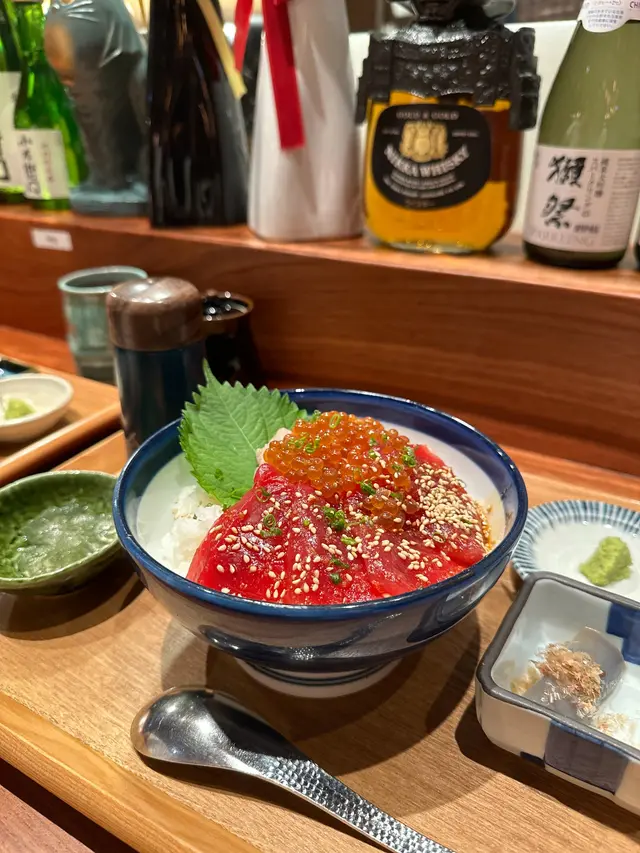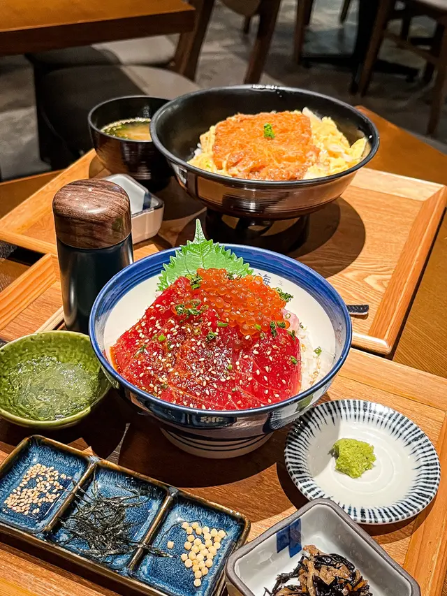 呢幾日去開emax,之前黎呢頭追星已經心心眼左呢間餐廳好耐,今日朋友都話想試呢間餐廳😍係好好食既日本丼飯呀😍一入餐廳已經好舒服,怖滿靚靚既日本裝飾👍🏻🎈醬汁吞拿魚丼呢款丼飯有醬汁吞拿魚(少辣),吞拿魚蓉,鮭魚籽,吞拿魚蓉勁多,差唔多鋪滿整個飯面,好好食,完全唔駛沾豉油已好夠味👍🏻而且店員教我哋,食到2/3左右,可以加上魚湯,形成茶漬飯!勁有驚喜!魚生鮮味,而且醬汁吞拿魚味道做得好好,怕辣人士都食到👍🏻🎈滑蛋豬扒丼今日仲有少少唔舒服,所以試左個熟食既丼飯😋味道好正!豬扒完全唔會淋哂!而且仲有脆口既感覺,豬扒味道唔會有羶味,而且滑蛋都做得好好,食落整個感覺都好舒服👍🏻配菜仲有醃製既蕃茄同味噌湯,蕃茄好有驚喜,好鮮甜開胃👍🏻餐廳坐得舒適,而且服務員勁友善,讚呢👍🏻查看更多