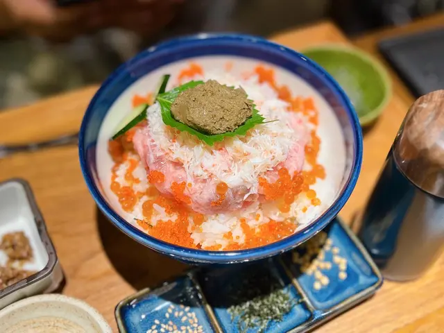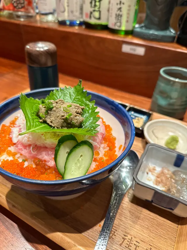 同朋友睇show前醫肚,睇左幾間見到呢個未開門已經有人排隊見到有海膽丼就入左去因為無book枱得番bar枱照殺擺設好有特色野食未嚟可以欣賞下D姿勢有少少18+海膽丼有壺魚湯可以比你做茶漬飯海膽不錯但我預期係成碗都係叫左杯柚子酒好清新~濃度唔算高炸紫菜山芋~外脆內有爆漿感,山芋本身無咩味,加左紫菜清清地第一次食燒明太子~就咁食有d咸都係撈飯或烏冬正d炸芝士魚餅~就無乜特別,芝士份量可以再多d下次都會想嚟試下其他丼,店員有主動問先前有無嚟過,有講解個丼既幾種食法查看更多