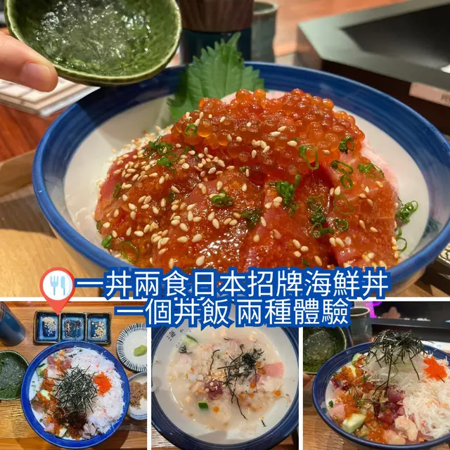平時海鮮丼飯食得多,但原來呢間主打海鮮丼飯可以一丼二食,帶比你雙重體驗。📍主打一丼兩食日本招牌海鮮丼,一個丼飯,兩種體驗【海街丼】來自東京的餐廳品牌,採用居酒屋木系裝潢,並以富日本風味的布藝作裝飾。多款魚生食材由日本空運直送到港,製作招牌海鮮丼,鮮味十足特別之處係每一個丼都會跟一個保暖壺仔,裏面裝住純白嘅鮮魚湯,真係好特別同細心,唔洗擔心魚湯,等碗飯食到三份一嘅時候將湯倒入飯裏面可以當茶漬飯食,仲能保持適當既溫度。🍵一個丼飯,兩種食法👍🏻每碗丼飯會跟一碟壽司醋啫喱,店員會教食客先加入壽司醋啫喱於飯中拌勻,成為壽司飯食。醬汁吞拿魚丼$190新鮮亂嫩嘅吞拿魚刺身,加埋海量軟綿嘅吞拿魚蓉非常之creamy,配上秘製醬汁,辣辣地好惹味,仲有粒粒嘅三文魚子,一碗飯有三種口感。海寶丼 $160餐廳推薦嘅人氣海寶丼,簡直有如海鮮寶盒一樣,集合多款海鮮,總共有8款,有吞拿魚、油甘魚、章魚、穴子、蜆、小扇貝、真雪蟹、鮭魚子、青瓜,啱晒海鮮迷,抵食推介!查看更多