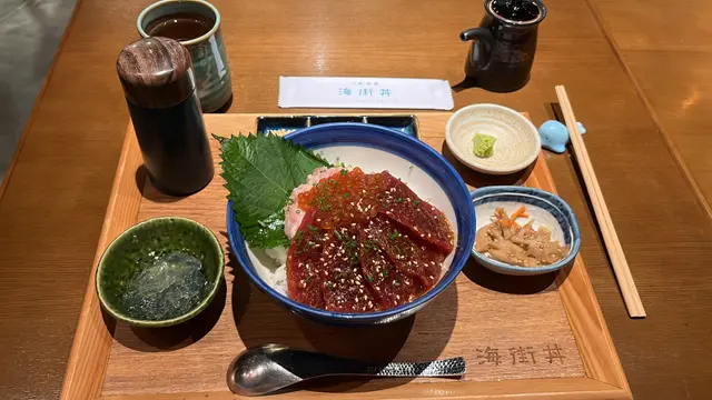 鮮味滿滿海鮮丼‼️🦐同女友去咗E-max睇戲🎬睇完去咗海街丼食晚飯😍裝潢採用居酒屋木系風格🪵大量日本風味的布藝作裝飾🇯🇵多款食材由日本空運夠新鮮😋主打食壽司及海鮮丼飯🥰醬汁吞拿魚丼,190蚊套餐💰吞拿魚丼外相好豐富,大量嘅魚籽,每嚿吞拿魚都好肥美,油脂分佈都超平均,而且套餐可以有兩種食法,店員提示可以加魚湯變成漬飯食法,魚湯非常鮮甜,好特別嘅食法😍京蒽味噌燒雞丼,130蚊套餐💰燒雞丼好大塊,灑上大量芝麻令雞扒更香,味道可口油膩感不太重,味噌汁恰到好處,味道濃郁又美味,份量夠夠好,有埋配菜蓮藕片解膩,好滿足🐓整體環境好有和風氣氛☺️服務態度好有禮貌😀食材夠哂新鮮,味道都唔錯,經過附近可以試吓😀查看更多