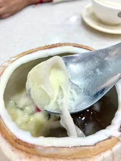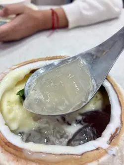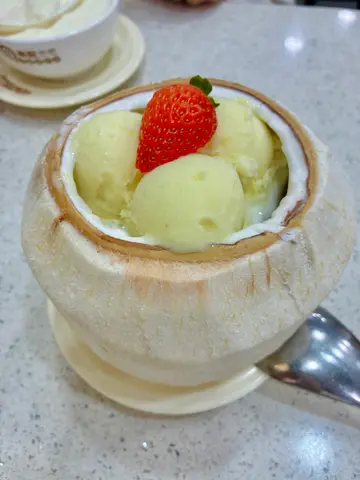 食左好多年嘅甜品店,由土瓜灣食到去太子,menu都轉過,但甜品一樣咁好食。正常價錢,但係好足料,有d貴少少嘅,真係食完飽到上心口😂😂😂大良燉鮮奶🐮朋友叫嘅燉鮮奶,凍熱都有,不過一定係熱最好食。朋友表示好滑,好甜,奶味亦都好濃,不過唔好甜嘅人,會覺得太甜。榴槤冰椰青凍我最近次次都係食佢,夠大個,食完會覺得好飽。成個椰青上檯嘅時候覺得超大個🤣🤣,勁開心😂。榴槤冰濃味嘅,有榴槤絲,唔係hea嘅雪糕。我通常會等榴槤冰稍融,等汁液可以流落下面嘅椰青凍,超好食😋。椰青凍呈果凍狀,用椰青水整,食落清甜滑溜,仲有條狀嘅椰青肉增加口感,成個椰青係滿晒架,無偷工減料,食完果凍啦,仲可以刮埋椰青入面嘅肉食,一樣厚肉,易咬,我食咁多次,無一次有不滿😉…查看更多