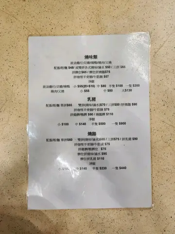 最吸引係燶叉油雞,再加埋佢哋嘅咖喱汁你明嘅就會明脆脆地又少少肥,野性既晏晝嚟食,件頭又大,價錢實惠位就先到先得嘅,始終係熟食中心但老闆娘超級好人,拜神喜慶,仲有得做埋乳豬全體,你肯去鵝頸街市發掘呢啲餐廳,其實驚喜仲多過喺街度食早啲去,冇咁多人嘅時候,同老闆娘講雞髀同埋燶叉燒,一般都可以俾到你配埋佢哋自己整嘅咖喱汁,再多飯同燒味係出奇地夾好多人都係食落,變咗熟客會再encore總之係出色啦,你哋去試吓就知完