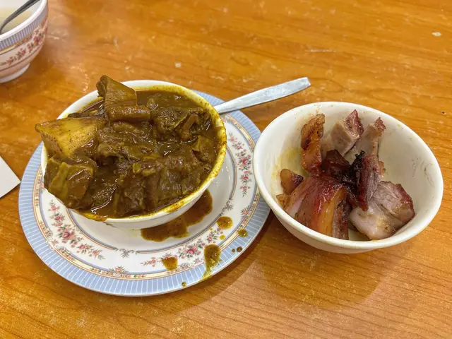 見到谷友話正,即刻衝去試試。先講咖哩 本身面頭啲咖哩係好香濃,好抵讚。但食咗兩啖一夾起裡面舊蘿蔔,碗底就有啲湯湧上來,因為佢咖哩汁都少,即刻沖淡晒,陰功!😢牛腩方面就一半半,有一半係帶肥或者帶筋嘅好食,另一半係柴皮瘦腩,攝牙罅就靠晒佢😆。不過唔係全部柴皮瘦就算啦。個例湯就幾好,飲到材料嘅味,唔係有味水。整體來講可以嘅,好順路經過先會再食嗰隻。建議商家換個大小小嘅碗,咖哩汁多翻啲。$55加汽水$7蚊共$62。熟食中心就唔平了。查看更多