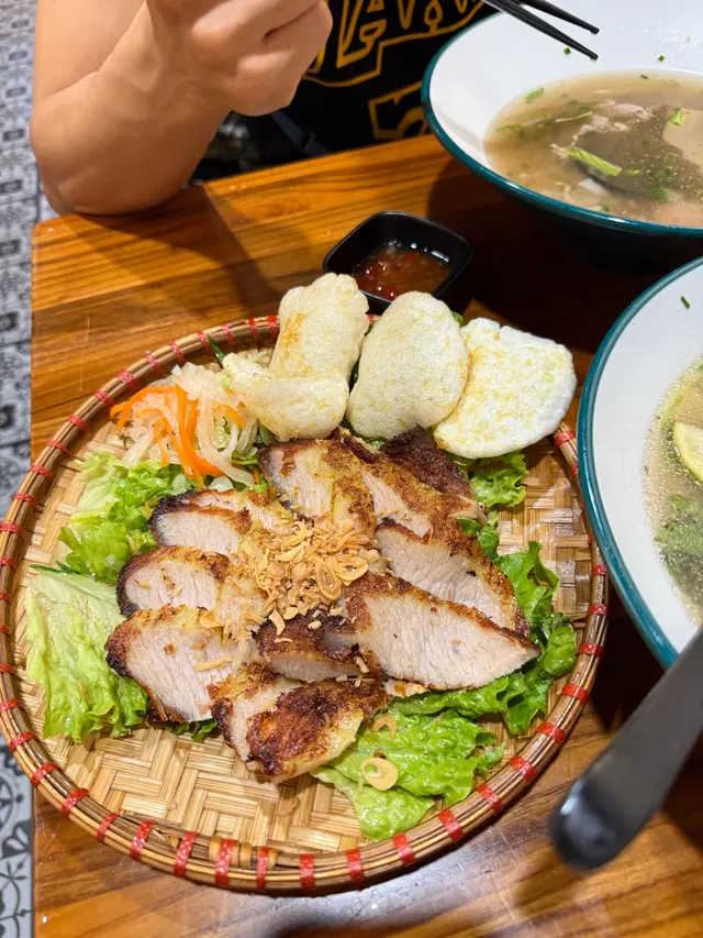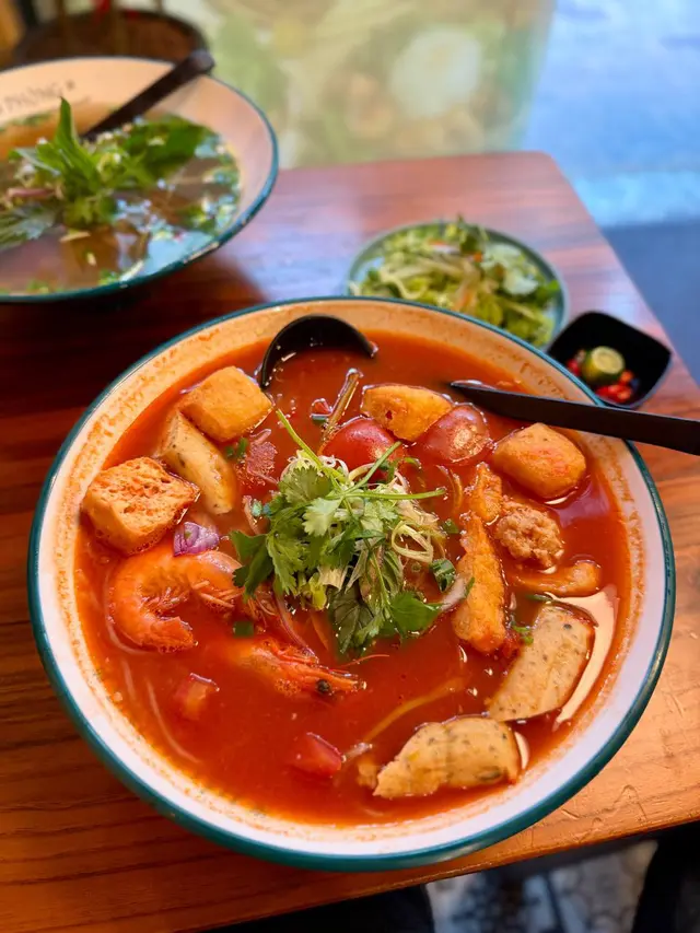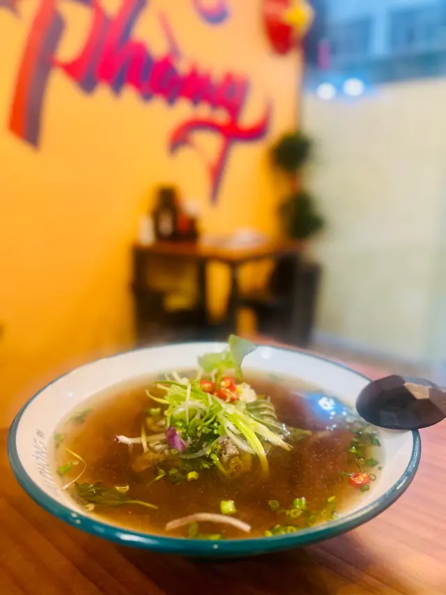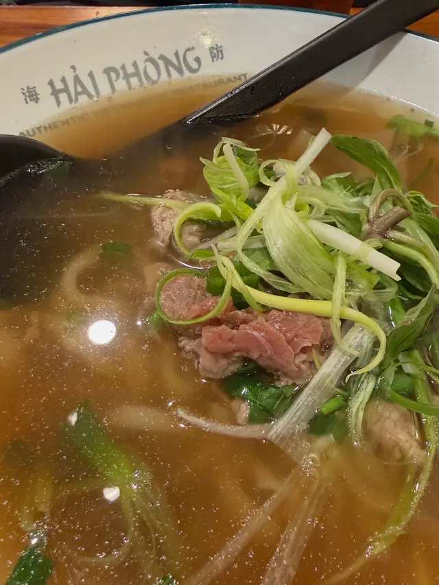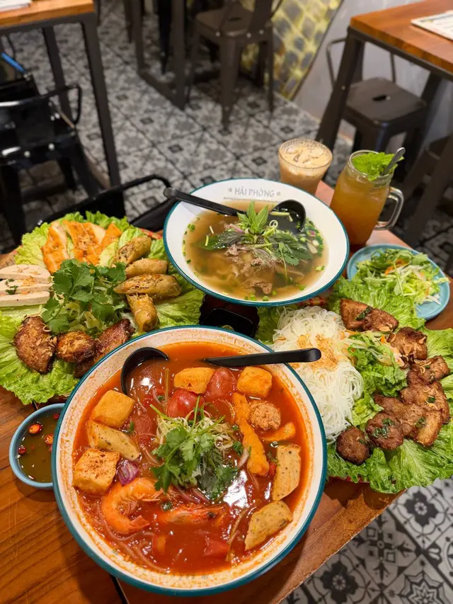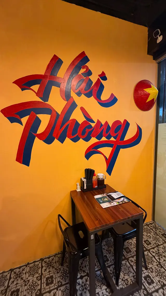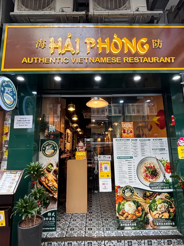 大角咀特色食店林立近期發現一間新開北越小店由越南人主理- 《海防》店鋪裝修有心思牆畫地磚鮮明吸眼球播放越南輕快音樂抒人一種越南旅行感難得有幸與影音達人飯聚一行三人就可以試多點:火車頭 & 海防招牌手切牛柳湯粉牛湯頭順喉舒服,有九層塔芫茜加持更清新火車頭有生牛,牛丸,牛腩手切牛柳好高質,有牛味無筋河粉爽滑有靭勁有質素的牛湯河海防蟹膏湯檬粉湯底濃厚內有蕃茄有蟹肉蕃茄甜帶微微蟹膏香配料墨魚餅,鮮蝦,扎肉條,豆腐扎肉條有趣,墨魚餅爽彈鮮蝦甜,豆腐吸湯非常滿足越式拼盤好有驚喜,雖然每款都會食得到,但有幾款卻是第一次味道。越式春卷有蟹肉有蝦,好多味道同口感但非常融合,再聽老闆指示,點點魚露,再添上一份惹味;扎肉好有趣,肉質好順滑,淡淡調味,喜歡。另外2款還有有墨魚粒的墨魚餅,還有不乾身的雞中翼特式海防法包法包內燒豬肉好食,法包軟硬度適合我,不會太硬𠝹口。老闆想客人食落無咁乾,下了蛋黃醬,個人就不太喜歡,有點蓋過了肝醬同酸菜,而且感覺變得有點港式,雖然味道唔差但卻跳出個主題。整體湯粉質素高之外,份量真係大碗到痴線。聽老闆講好多食材都是由越南進口,雖然大角咀都有幾間越南小店,但各有定位,海防比我感覺好明確鮮明,係香港這個地方要專注一個主題嘅食店係好勁。我喜歡,繼續保持質素,相信好快會被看到!#海防📍大角咀大全街43號大滿樓地下1A號舖銅鑼灣邊寧頓街13號2樓…查看更多