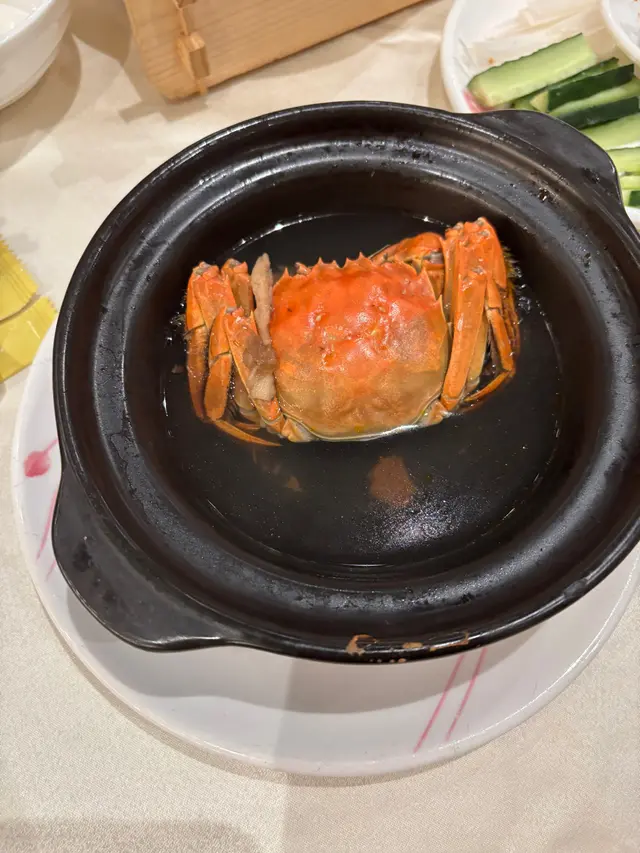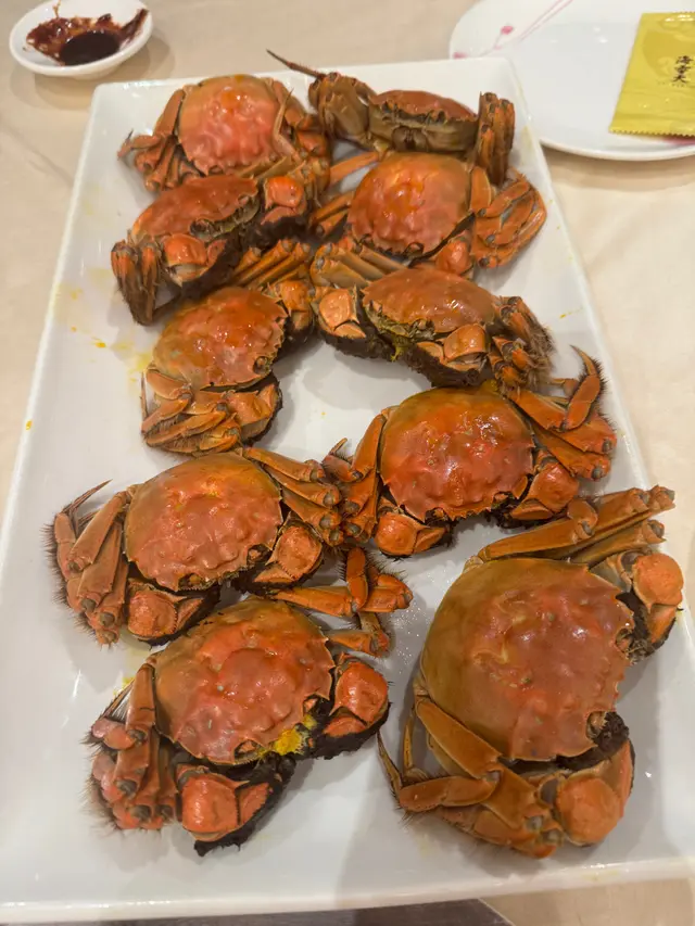 「九月圓臍(乸),十月尖(公)」。農曆九月適合吃蟹乸,此時蟹黃飽滿;農曆十月適合吃蟹公,此時蟹膏豐腴。 農曆九月食,正常呢個時段應該蟹乸蟹公都會食齊,食店提供竟然全部都是蟹公,一隻蟹乸都沒有,雖然是任食,但竟然一隻蟹乸也沒有,是一隻都沒有🫢,而且蟹還很細隻,大約3両左右大小,有一半蟹還不太新鮮,質素麻麻,對此非常失望。雖然任食預左蟹會細隻而且質素會參次不齊,但實際比預期想像為差,所以非常失望。平台購買任食大閘蟹套餐要4位以上才送一隻乳鴿,每人可分享1/4部位,2位就沒有,因為套餐提供食物很少,怕不夠吃,所以自費下單額外點了一隻滷水乳鴿,味道普通。唯一可以讚是片皮鴨味道不錯。薑茶夠熱但薑味不足,不夠薑。…查看更多