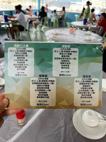 一行七人揸車到布袋澳食海鮮,因為時候都算早,大約6點,所以一去到就有位,叫了一條蒸魚(杉斑),椒鹽瀨尿蝦,白灼基圍蝦,蒸扇貝,椒鹽鮮魷,花雕蒸蟹,蒜蓉西蘭花,餸菜都得快上枱,所有海鮮都整得鮮味好食,尤其係花雕蒸蟹,用蒸蛋方式蒸蟹,蛋蒸得好滑加上蟹汁都混合到蛋入面,快常好味😋,唯一覺得失敗的地方就是,椒鹽鮮魷啲魷魚肉太硬,可能因為煮得過熟關係,除此之外,整體食物都在中上水平,而且每人都只係450-500,算係可以接受…查看更多