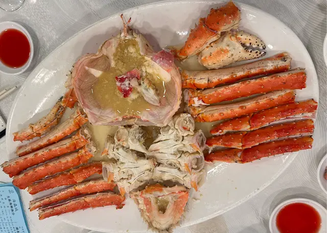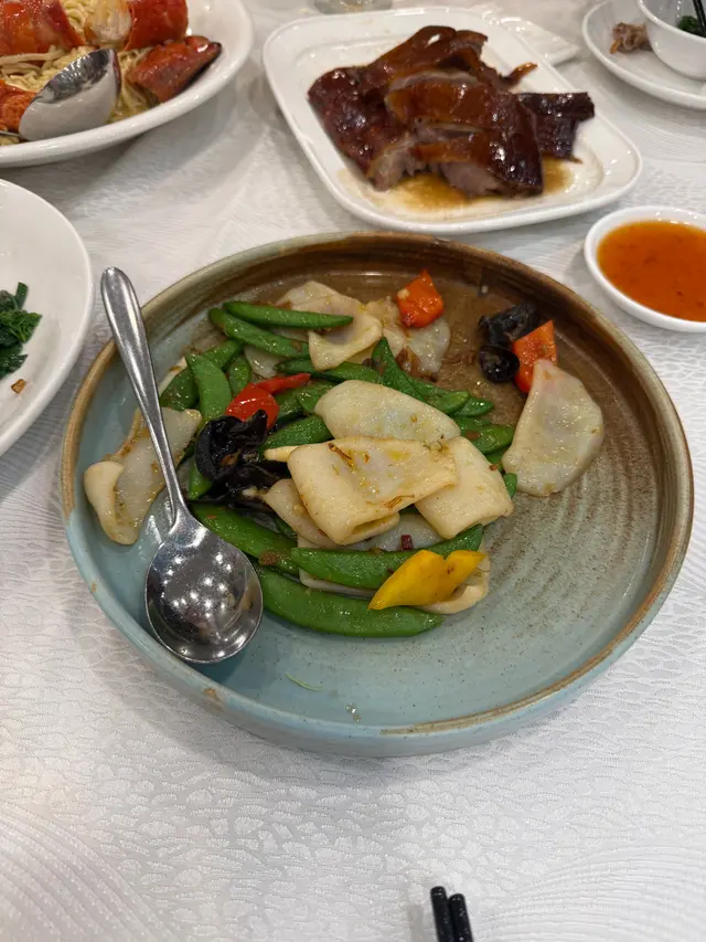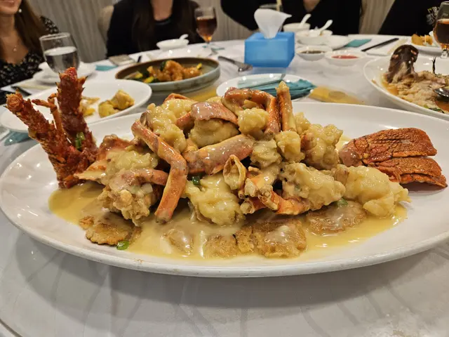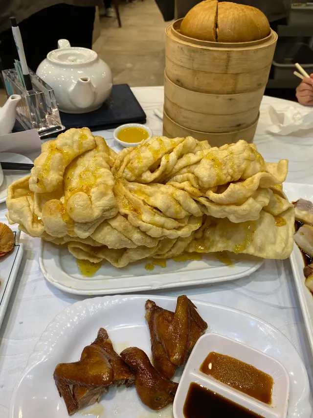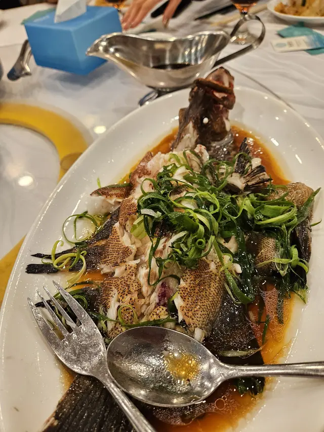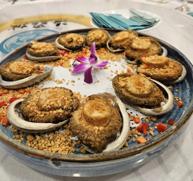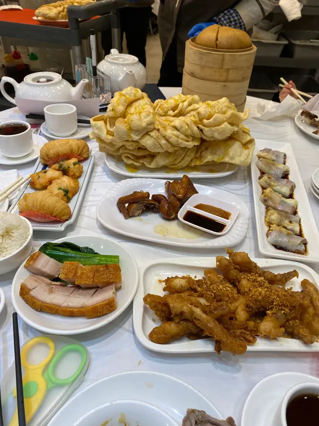 今天在海鱻城的聚餐,享受了一餐回味十足的晚餐。預訂了的菜單中第一道菜是椒鹽鮑魚,諗唔到肉質十分柔軟,椒鹽嘅味道亦都好香,好少食到啲鮑魚一啲都唔韌。第二道菜係雞湯翅,侍應先將兩大盤魚翅放上枱打卡,然後即場用雞湯煮番啲魚翅,一人一碗熱辣辣同埋勁大梳魚翅,同去飲食嗰啲浠溜溜冇得比。豉椒蟶子王,每條蟶子都有長又大又香,一人一隻好似都唔夠喉。有條唔知咩魚兩味,一味係西芹炒魚球,另一味係啫啫魚雲,雖然唔知係咩魚,但係肉質結實鮮甜,好好食。之後再上一碟超大碟龍蝦伊麵,龍蝦應該好大隻,龍蝦肉勁大嚿,超新鮮又彈牙,芝士伊麵底好好味,我食咗兩三碗。重有燒鵝,塊皮燒到脆卜卜,啲肉就實淨啲,都好好味。櫻花蝦炒飯上面啲櫻花蝦超級無敵多,啲櫻花蝦隻脆卜卜同埋好香,個炒飯好好食。最後仲有糖水紫米露同埋乳酸糕,乳酸糕個味係益力多味,紫米露唔甜,可惜一人得一碗完全唔夠喉。…查看更多