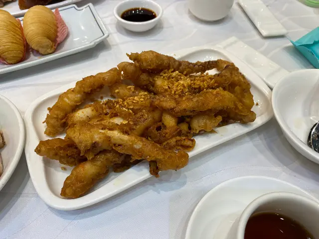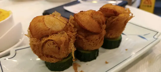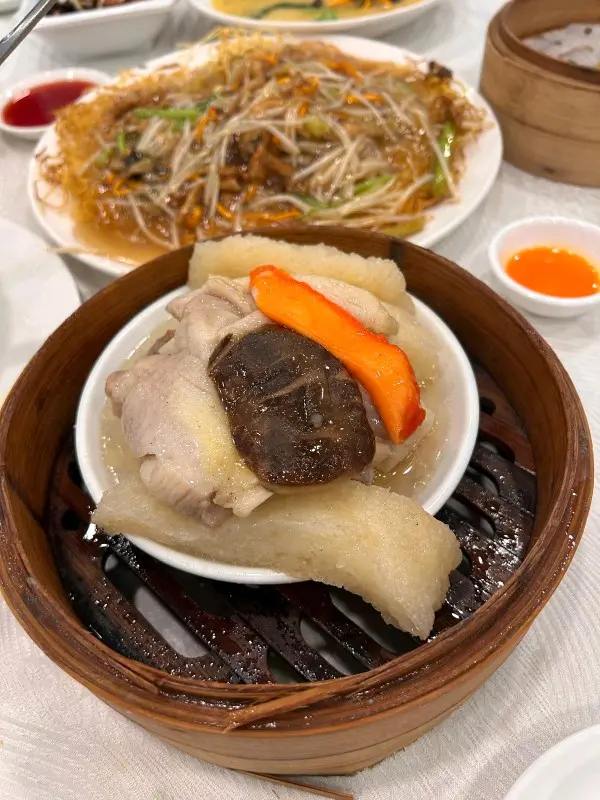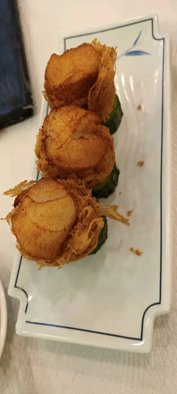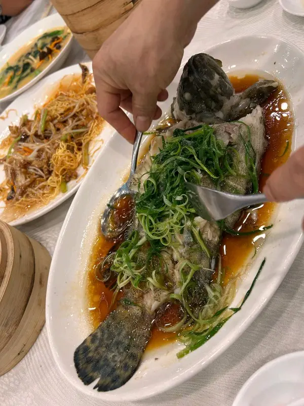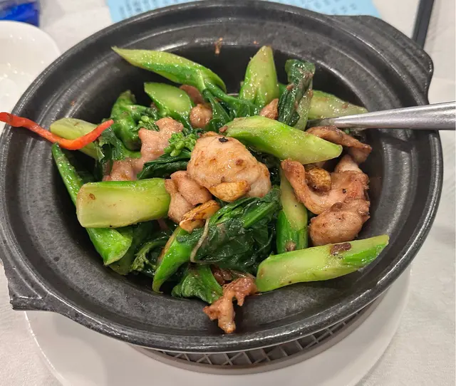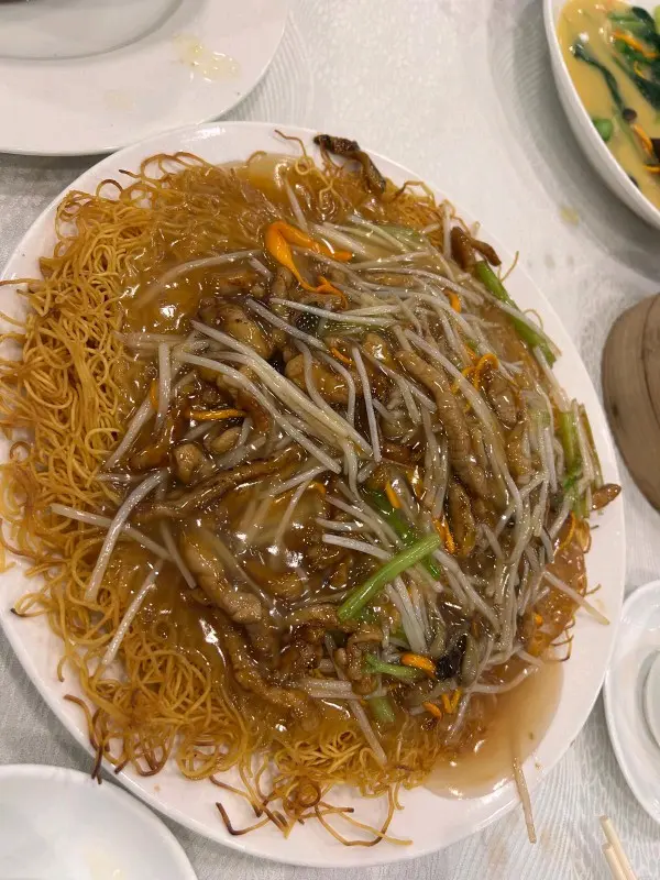 今天在海鱻城的聚餐,享受了一餐回味十足的晚餐。預訂了的菜單中第一道菜是椒鹽鮑魚,諗唔到肉質十分柔軟,椒鹽嘅味道亦都好香,好少食到啲鮑魚一啲都唔韌。第二道菜係雞湯翅,侍應先將兩大盤魚翅放上枱打卡,然後即場用雞湯煮番啲魚翅,一人一碗熱辣辣同埋勁大梳魚翅,同去飲食嗰啲浠溜溜冇得比。豉椒蟶子王,每條蟶子都有長又大又香,一人一隻好似都唔夠喉。有條唔知咩魚兩味,一味係西芹炒魚球,另一味係啫啫魚雲,雖然唔知係咩魚,但係肉質結實鮮甜,好好食。之後再上一碟超大碟龍蝦伊麵,龍蝦應該好大隻,龍蝦肉勁大嚿,超新鮮又彈牙,芝士伊麵底好好味,我食咗兩三碗。重有燒鵝,塊皮燒到脆卜卜,啲肉就實淨啲,都好好味。櫻花蝦炒飯上面啲櫻花蝦超級無敵多,啲櫻花蝦隻脆卜卜同埋好香,個炒飯好好食。最後仲有糖水紫米露同埋乳酸糕,乳酸糕個味係益力多味,紫米露唔甜,可惜一人得一碗完全唔夠喉。…查看更多