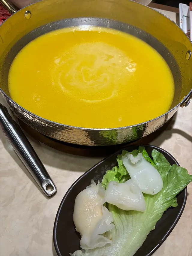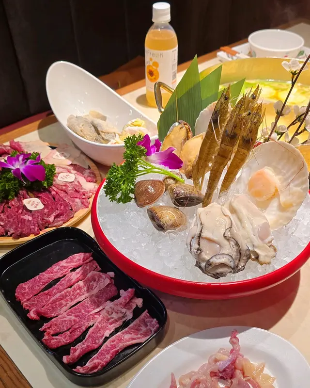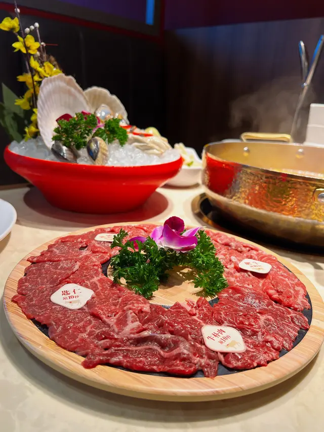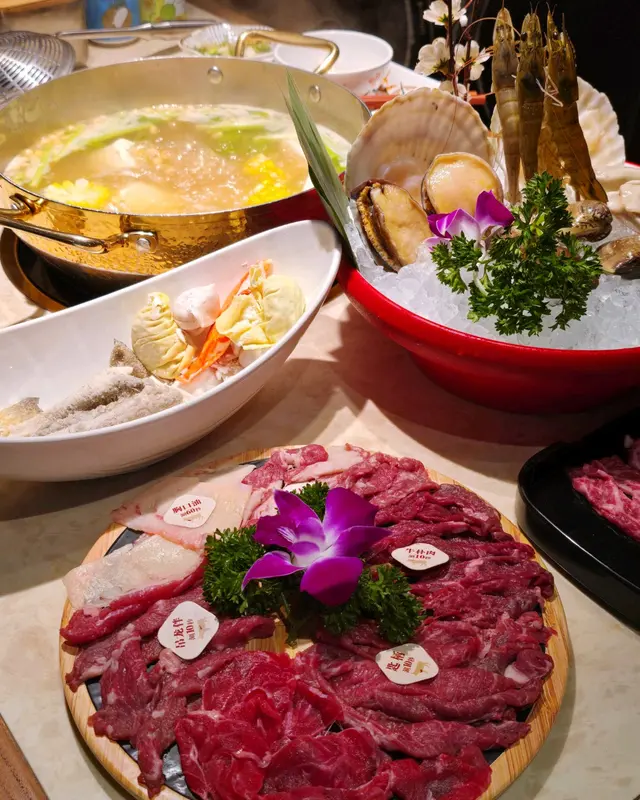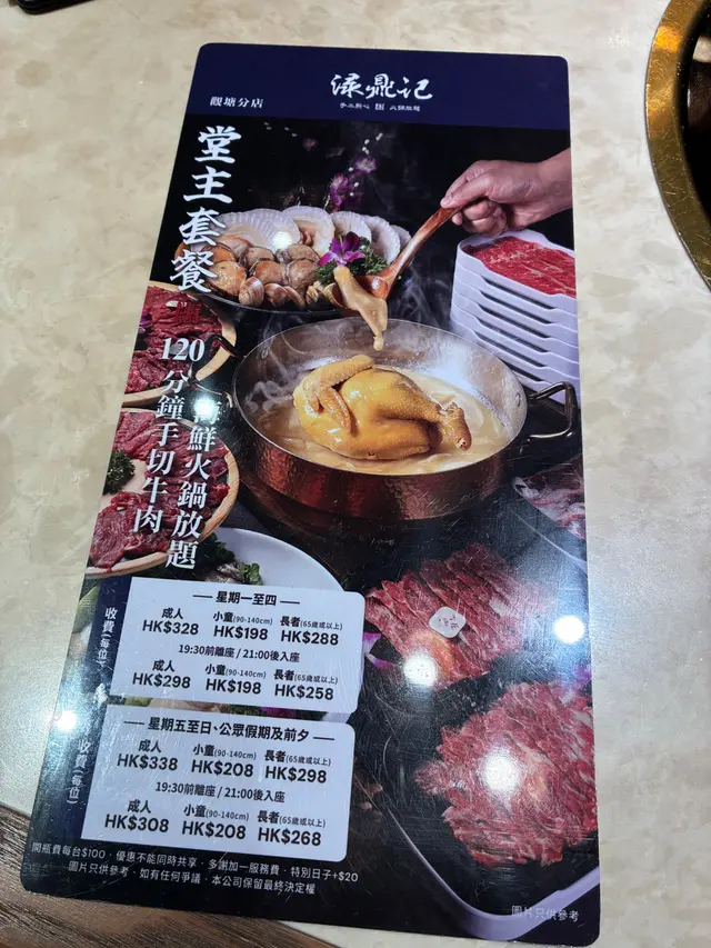 選擇了堂主晚市火鍋放題,湯底選擇了牛骨湯底,湯底很清、很足料。肉類有牛、豬、羊、雞。牛可無限任選安格斯牛,及奉送一次性雪花手切牛肉。豬起用伊比利亞黑毛豬;羊使用紐西蘭羊肉片;雞選用清遠脆皮雞,全都無限量供應,而最特別的是有手切潮汕牛肉,這在火鍋放題中並不常見。先靚靚的上一盤,打咭度滿分,每款手切牛的上方放有一個小牌寫著該部位的名稱及位於牛的哪個位置。喜歡的話,可於手機自行翻點某些部位,甚至再點一整盤,我們特別喜歡匙柄,翻點了多次呢,大滿足!海鮮盤會先上一盤,有飽滿的生蠔、扇貝、鮑魚沙白和海蝦,各樣皆新鮮,全部都可翻點。手機點的海鮮還有幾項魚類。手機點的項目還有手打丸和一些熟食。自助區主要擺放菇、蔬、丸、腸、餃,還有多款飲品,餐後奉送Häagen-Dazs雪糕。總的來說,以$300左右的價錢,可以在2小時內任食40多款有質素的火鍋配料,性價比相當不錯。如朋友歡聚,只需每位加$30享受無限時,性價比更高!!服務方面比較參差,幸好主力負責我們枱的超好笑容又有禮貌。…查看更多