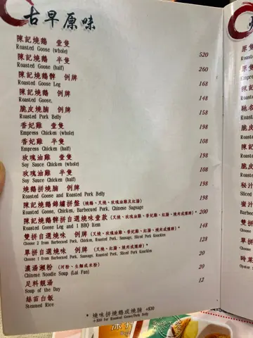 耐無食燒味 所以晚餐就決定食陳記。入到去未坐低已經見到幾隻螞蟻喺凳同牆上爬黎爬去🤪。未算影響食慾,所以叫左燒鵝瀨粉,60蚊。黎到未食肉,先飲湯。個湯係暖同凍之間,叫侍應俾過一碗熱湯我,侍應態度都好好,佢同師傅反應返,但師傅就話睇住佢啱啱滾,唔會凍,講野好大聲,廳面都聽到,我唔明我呃你做麥。跟住熱湯黎到,諗住終於可以品嚐美食,就發現成份燒鵝大半都係得層皮同肥油,味道都麻麻,如圖。我同侍應反應,佢講返俾師傅聽, 叫師傅切返少少胸俾我,我聽到師傅話我俾上髀啦窩,跟住唔記得講左d麥,但作為食客我覺得佢真係好無禮貌。Anyway,埋單經過燒味檔,d鵝完全發育不良,老店經營多年,咁樣食物水準真係唔多掂,難怪鋪頭貼住話自己開過好多分店都係“曾經”。…查看更多