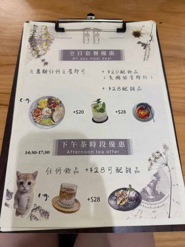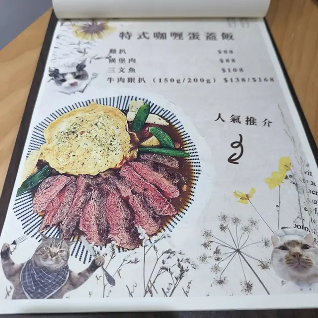 🤤🤤開心星期五來到呢一間很有特色的Cafe,簡簡單單的裝修,已知道很喜歡寵物,店內的坐墊都是貓的擺設來設計,而且門外亦歡迎寵物一同進食😆😆首先一講,店舖真是十分優惠, Cafe好少有套餐,全日只需要嗌一款主食,就可以加$20有一杯飲品,再加$28就有一款甜品👍🏻另外下午茶時段,只需要叫任何飲品,加$28就可以有一款甜品😲主食方面🍱日式咖喱蛋包飯配草字牛肉眼 150g 首先肉眼煎得非常好,咬落去不但只有牛肉味,而且肉質豐富,一食就知不是用普通牛,而且咖喱汁亦很濃郁,即使配菜的薯仔,亦是先處理過,食落去與眾不同,十分高質🤤🍱蕃茄魚湯烏冬配雞扒雞扒煎得剛剛好,值得讚讚賞是蕃茄魚湯真是非常出色,是自家製作,飲得出完全沒有味精,而且很濃郁的魚湯味道👍🏻🍵牛油果乳酪奶昔牛油果是新鮮打造,不但奶昔十分香滑,而且又濃濃牛油果的香味🍵凍抹茶牛奶香香的抹茶味加上濃郁的牛奶,與出邊只用返死甜的抹茶牛奶完全不同🍰法式焦糖奶油布甸香濃的蛋味,配上面頭脆卜卜的焦糖整體來講這間Cafe 很高質,雖然位置並不是近地鐵站,但食得出所有食材都很新鮮,而且很高質,價錢亦很合理,包括全日都有餐可選擇,我必定會再來試以及推介!…查看更多