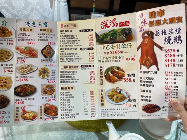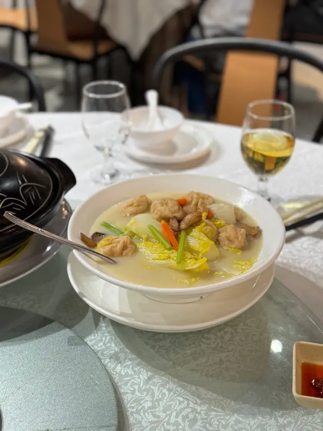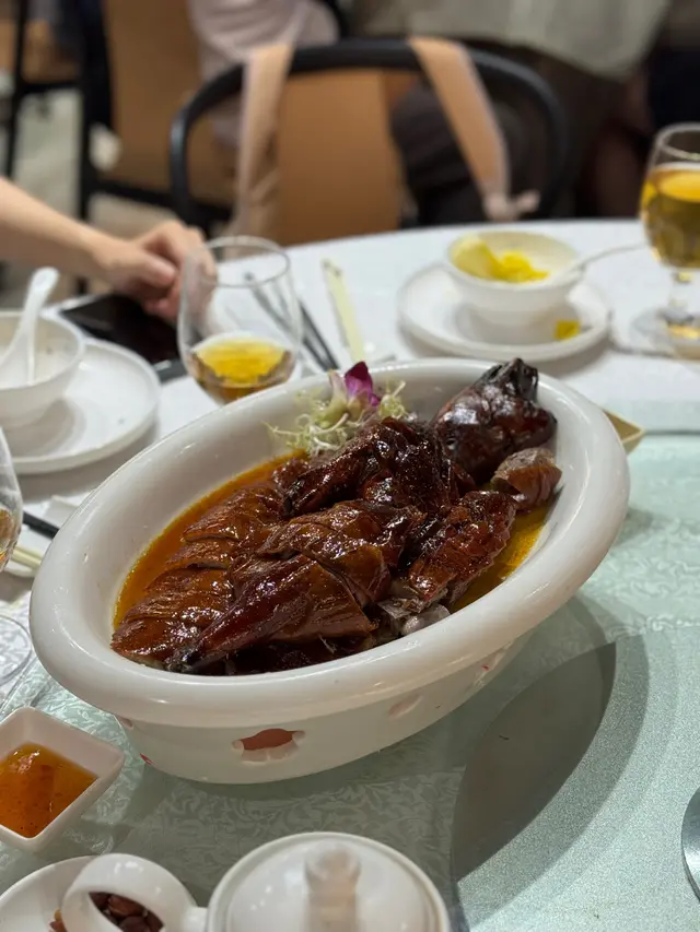 今次已經係二刷深鴻因為中秋節正日周圍都比較難book枱但係因為呢度同老闆OK熟所以大時大節都有枱同埋以中餐嚟講呢度性價比非常高首先一嚟上咗咕嚕肉咕嚕肉炸得脆口而且甜酸汁開胃每嚿肉都好掛汁之後就嚟咗最期待嘅燒鵝佢燒鵝有肉之餘又唔會太肥太多膏而且有好香荔枝木味柴火香氣 味道一流上湯龍蝦伊麵上湯味道濃郁而且龍蝦啖啖肉不過希望下次伊麵可以多啲西蘭花炒帶子貴妃蚌非常夠鑊氣加埋XO醬非常惹味基本上呢度小炒都好有保證冬菇花膠片冬菇件件都好厚肉花膠片爽滑蠔皇汁濃郁魚新鮮大條魚肉實淨 冇話霉淋淋魚翅多料最後加埋個蛋白炒飯中秋做節飯 簡直完美整體嚟講座位較迫不過侍應服務非常好而且味道以中菜嚟講都是數一數二而且性價比高會係多人聚餐或者做節首選