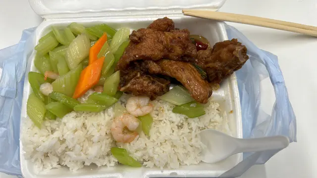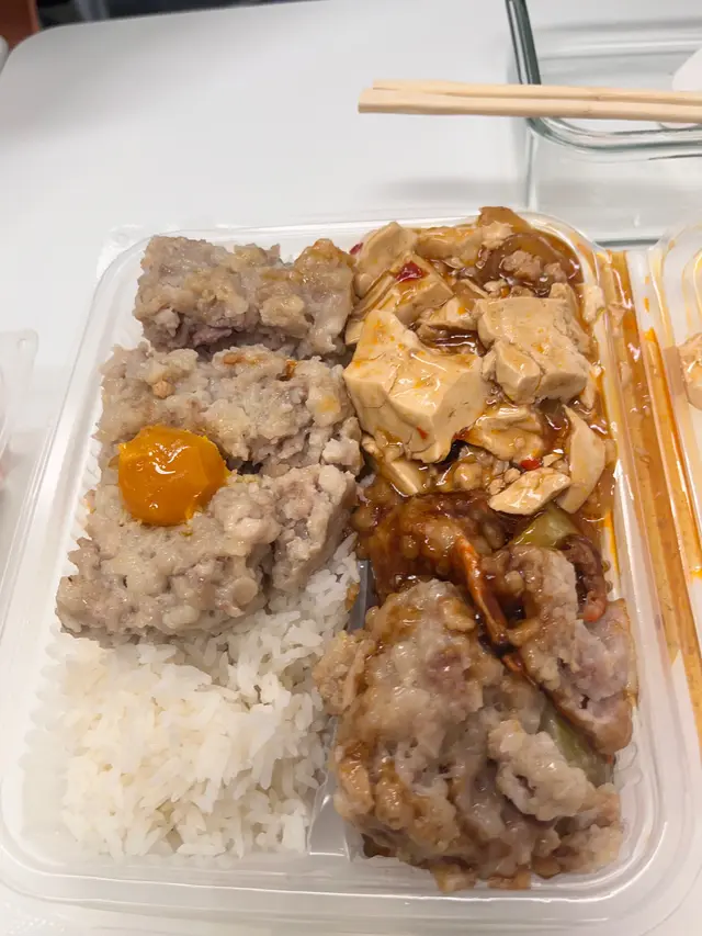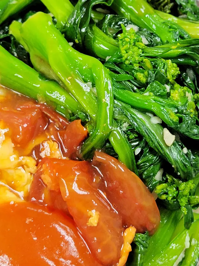 添飯餸的蒜蓉芥蘭和蕃茄炒蛋點了添飯餸的蒜蓉芥蘭和蕃茄炒蛋, 因為八時多突然肚餓, 但想去啟鑽街市買個兩餸飯時他們已經差不多準備打烊, 結果便行去附近買。很少吃菜, 但看到芥蘭炒到那麼翠綠便忍不住點了。吃起來很香, 有蒜味, 但不辛辣, 讓芥蘭吃起來不會那麼單調沈悶, 而且菜莖的軟硬度把控得很好, 不會太硬到咬不開, 而且味道不苦, 挺好吃的。搯餸姐姐亦給很多﹑很大方, 是抵食的。蕃茄炒蛋亦很開胃, 酸甜味道平衡, 而且有醬汁拌飯, 好吃。…查看更多