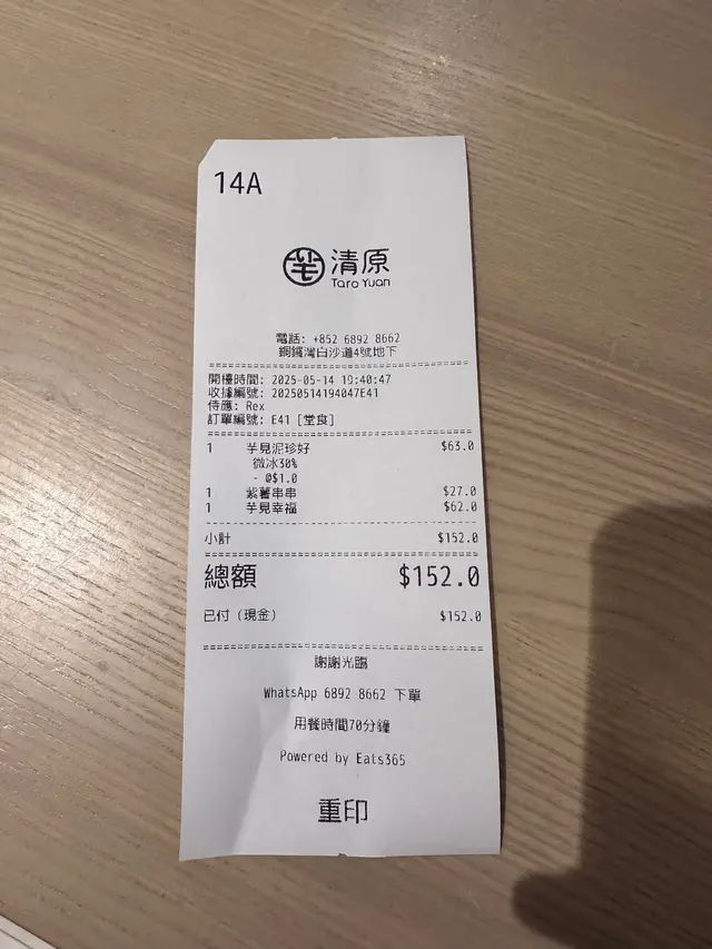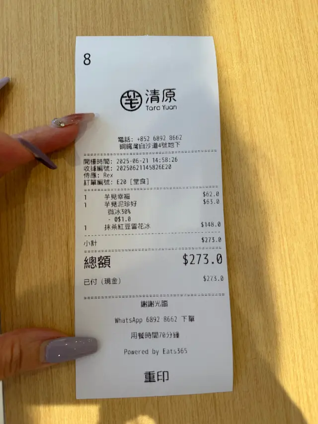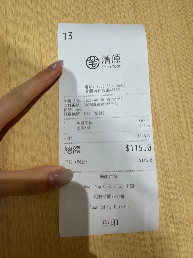 清原 (銅鑼灣) 網址: https://s.openrice.com/QrbS0tWSD00 地址: 香港銅鑼灣白沙道4號地舖 電話: +852 68928662