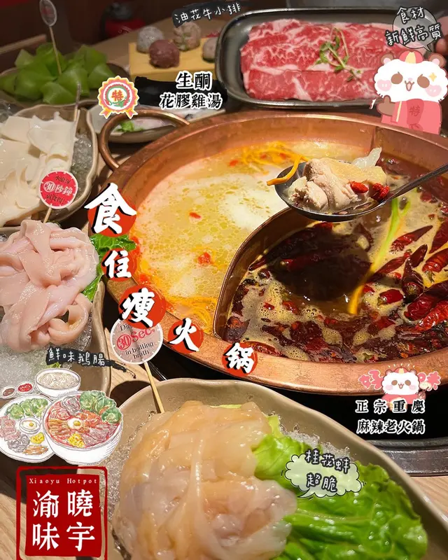 平時都好鐘意打邊爐,但係又好怕肥,《渝味曉宇重慶老火鍋》打破呢種舊觀念,最近邀請左生酮飲食達人唐貝詩Lydia Tong合作,聯乘設計出一套生酮火鍋,可以食住瘦 ‼️真係健康既一餐😍今次揀左位於沙田既分店,環境乾淨企理,座位好寬敞,坐得好舒服!鴛鴦鍋生酮養生花膠雞鍋湯料入面有三黃雞,花膠,蟲草花,杞子,店員講成個湯頭最少要煲6個鐘,相當清甜普通辣大紅鍋經典嘅四川湯底,越煮越香,越煮越辣!美國Prime 牛小排 雪花均勻,肉質好嫩,牛肉味濃郁~海帶麵海帶製成嘅麵條主要係纖維,卡路里接近係零😍比一般麵質爽脆,外形有啲似粉絲,但食落去好爽口手打黑松露墨魚滑超香黑松露味,質地好Q彈,超中意手打蝦滑蝦滑好香濃蝦味,但牙爽口仲有啲蟹子添!功夫萵筍片好健康,中和返食完肉嘅油膩。食落爽甜珊瑚蚌好彈牙爽口,食落滿口都是海鮮鮮味,一分鐘即食我地就試左生酮雜莓梳打同青檸梳打,飲落好清爽解渴好適合夏天餐廳都好貼心,我最鐘意佢可以選擇叫一份/半份,就算人少少都可以試多幾款。全部食材都好新鮮,值得推介🫰🏮渝味曉宇重慶老火鍋🏮📍地址:沙田沙田正街18號新城市廣場一期7樓709號舖查看更多