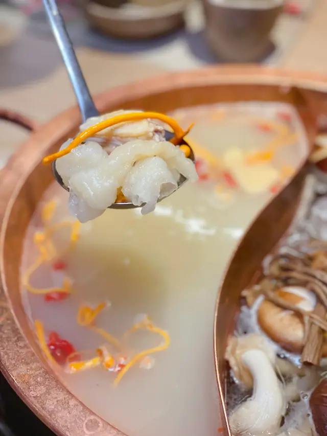 一黎坐底就俾碗糖水俾你暖胃,驚辣鍋底係正宗,香料好足,唔係得個麻字佢辣係順口,但都幾辣下所以配醋做沾汁,解辣解膩火鍋配料先係主角大路野唔講有個菜乾不得了食落去爽脆,加小少辣又未去到食菜脯咁推介剝皮魚都有,係襯炸腐皮都幾好食另叫左聖子,食材係新鮮但呢度所有野偏貴查看更多
