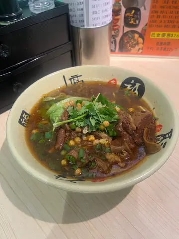 睇完戲之後想找些食。但一個人不知道可以食什麼。呢排股市樓市暢旺。搵間貴小小有氣氛餐廳。獎勵下自己個胃。我最愛食紅燒牛肉麵餐類。。。。。在這個繁忙的都市中,偶爾品味一碗熱氣騰騰的紅燒牛筋牛腩麵,彷彿能讓人瞬間回到那份溫暖的記憶。這道麵食的魅力在於其濃郁的湯底,牛筋與牛腩在慢火熬煮中釋放出豐富的鮮香,湯汁醇厚,色澤紅亮,令人垂涎。滑順的口感牛肉的軟嫩相得益彰,渝味碗碗香 (新蒲崗)新蒲崗錦榮街21號地舖