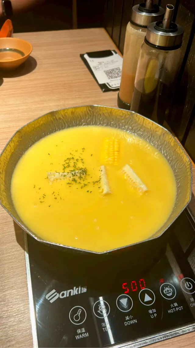 今晚同班friend去咗又一城溫野菜食晚餐🌃,嘩!門口排長龍,walk-in等位勁多人,好彩我哋用kapu pass app book咗枱,準時7:30有得入座。餐廳環境闊落坐得舒服,但人手明顯不足,叫加茶同埋單都要追住侍應,好彩食物上枱快,氣氛熱鬧,等吓都值得啦!🍽️粟米湯底味道清甜到爆,粟米香四溢,湯底濃郁得嚟唔膩,忍唔住未落肉就飲咗幾啖!加30蚊試到,做法係用新鮮粟米熬煮,襯托蔬菜鮮甜一流,但同牛肉就唔太夾,評價:必試湯底之選🌽❤️溫野菜盛合色彩繽紛,有蘿蔔、生菜、娃娃菜等,全部新鮮爽脆。做法簡單喺粟米湯底滾一滾,吸收晒湯汁精華,鮮甜感爆燈,感覺健康又滿足,評價:蔬菜控必點🥬薩摩牛叫咗薩摩牛三筋肉,牛味超重,油脂分布平均似雪花,入口即溶好滑溜。做法係輕輕灼幾秒就食得,配壽喜湯更夾,感覺高級和牛享受,評價:肉食者天堂🥩熊仔福袋年糕限量版熊仔造型得意到震,煮完係薄豆皮包住拉絲麻糬,口感軟糯煙韌。做法直接落湯滾軟,食落唔黐牙有驚喜,評價:創意小食必試🧧仿蟹柳蟹味十足,唔似食麵粉,滾幾秒就拎起,保持彈牙。做法簡單配烏冬一齊食,感覺平民但惹味,評價:快煮之選好方便🦀整體晚餐好豐富,粟米湯底係靈魂,肉類新鮮蔬菜甜,人均$400左右,飽到捧住個肚走,絕對會再encore!😋…查看更多
